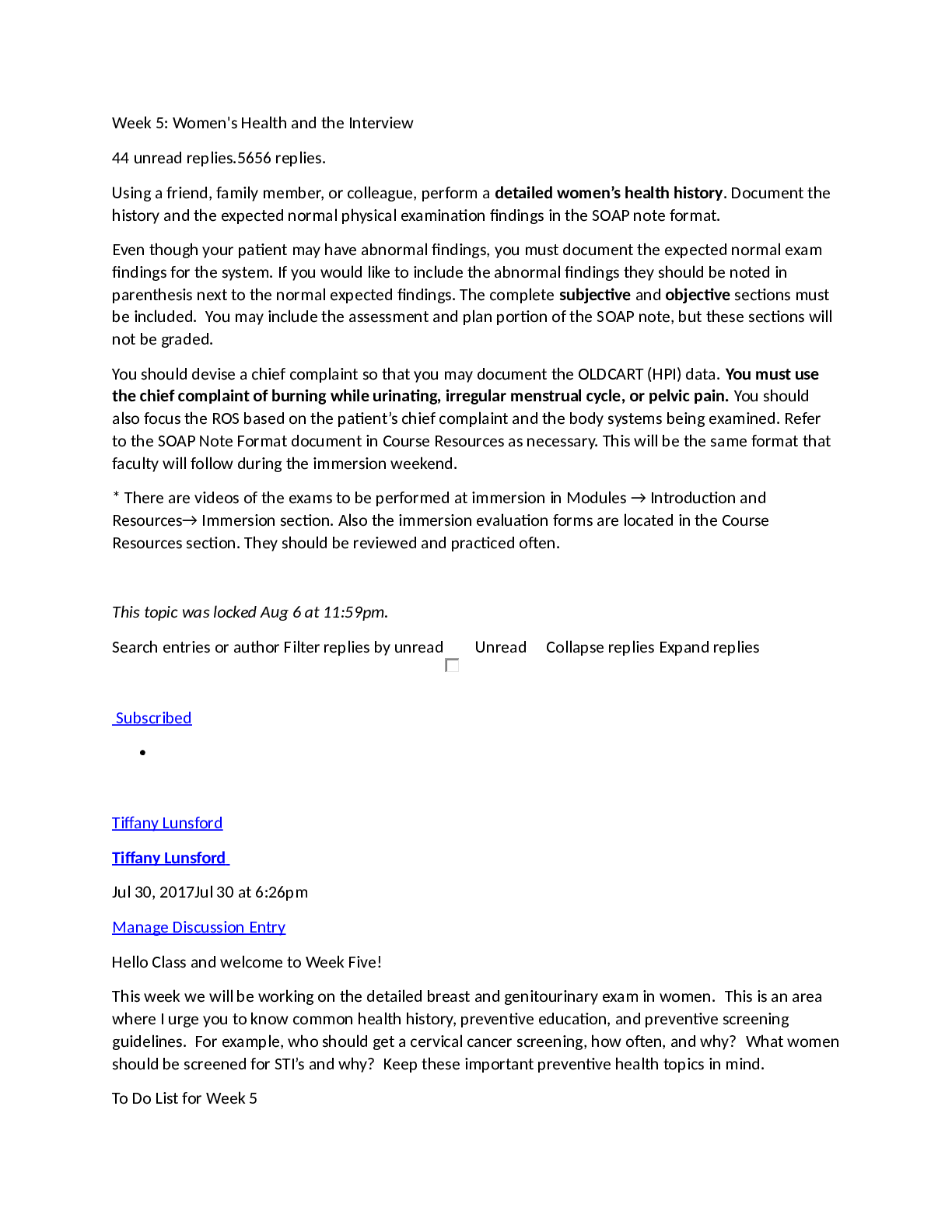 *NURSING > DISCUSSION POST > NR 509 Week 5 class discussion (Women's Health and The Interview) | GOLDEN A + DISCUSSION