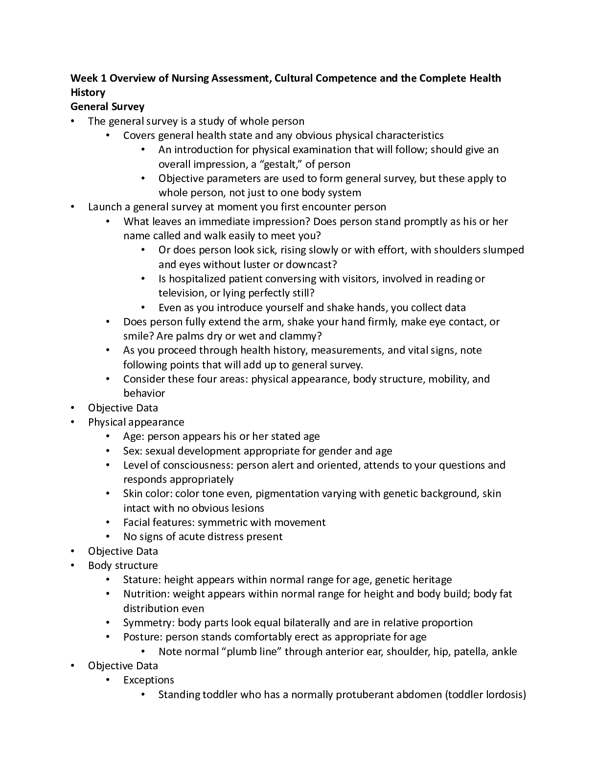 *NURSING > Study Notes > Week-1-Overview-Nursing-Assessment-Cultural-Competence-Complete-Health-History