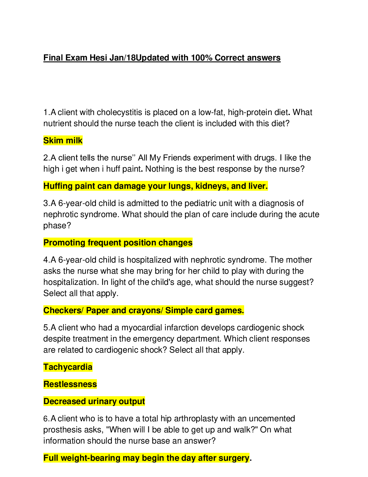 *NURSING > Final Exam Review > Final Exam Hesi Jan/18Updated with 100% Correct answers