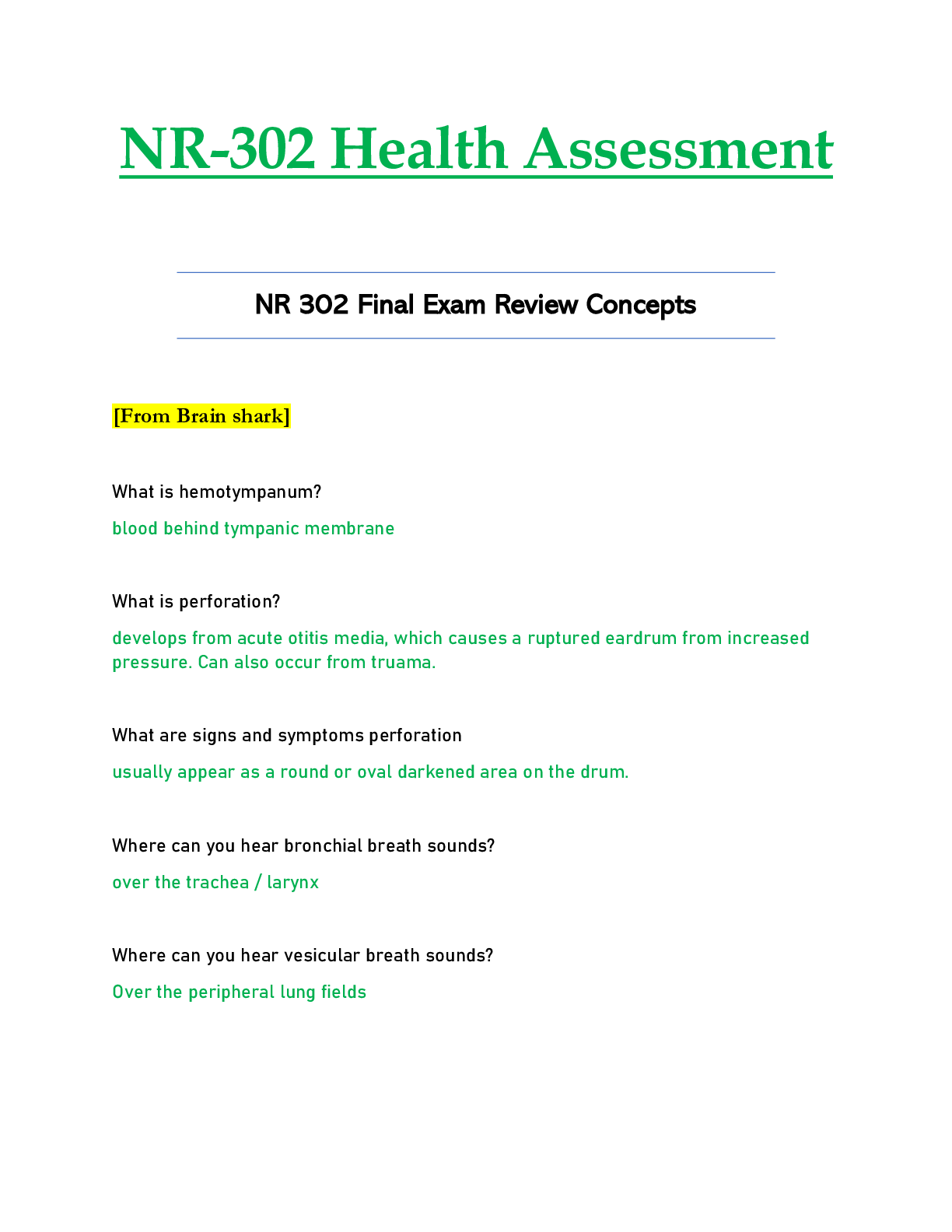 *NURSING > Final Exam Review > NR302 / NR 302: Final Exam Concept Review Updated: Health Assessment - Chamberlain