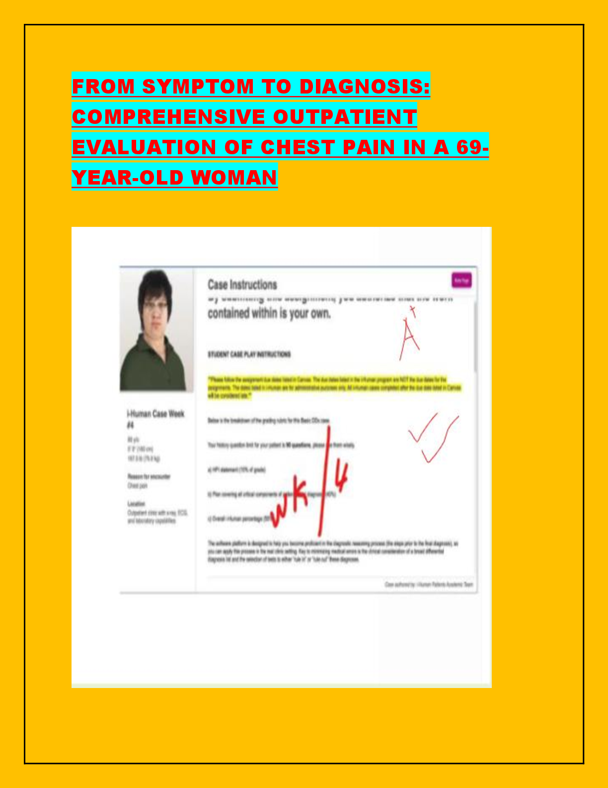 *NURSING > iHuman Case Studies > FROM SYMPTOM TO DIAGNOSIS: COMPREHENSIVE OUTPATIENT EVALUATION OF CHEST PAIN IN A 69-YEAR-OLD WOMAN