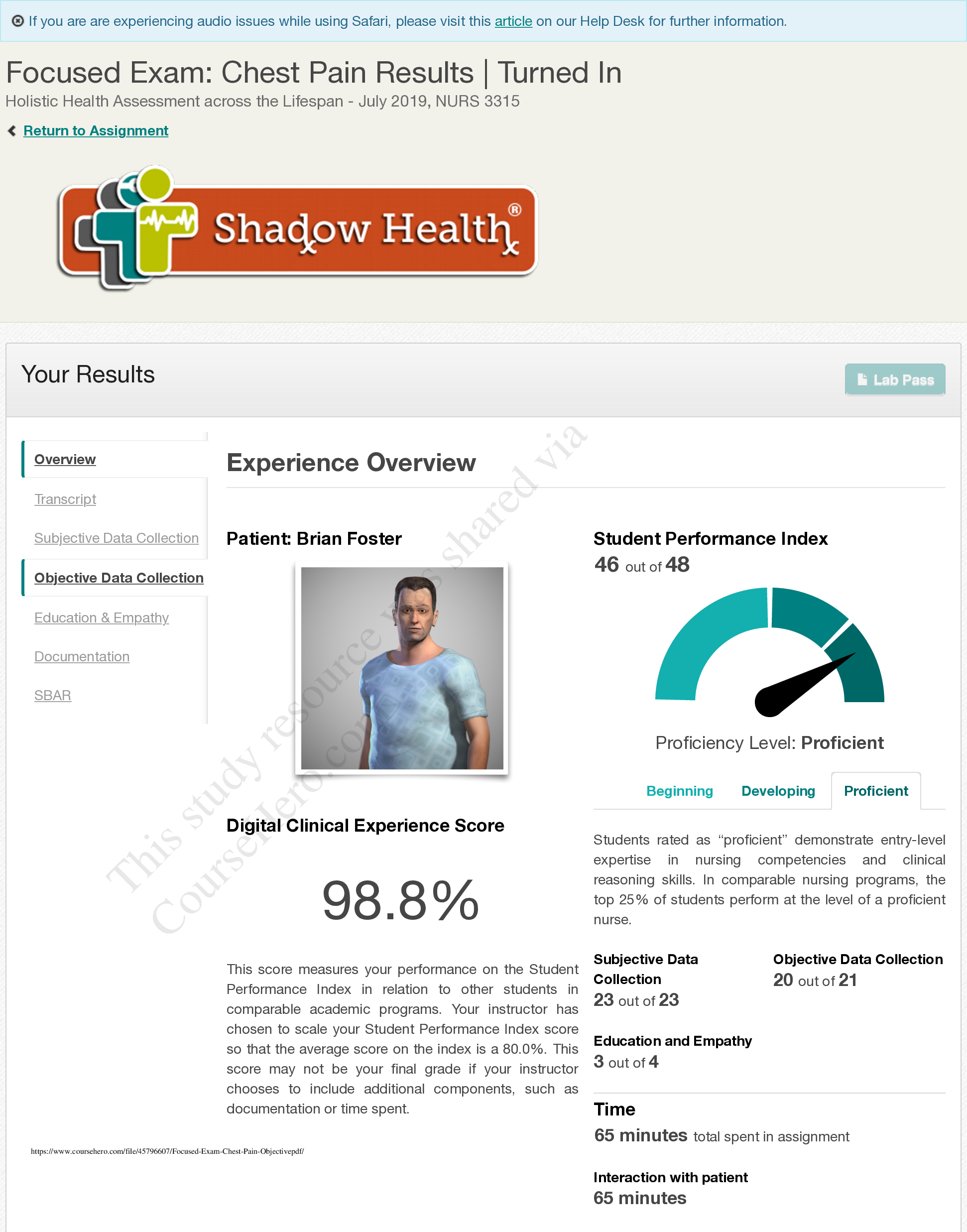*NURSING > SHADOW HEALTH > Focused Exam-NR-509 Advanced Physical Assessment-Chest PainObjective.pdf.pdf