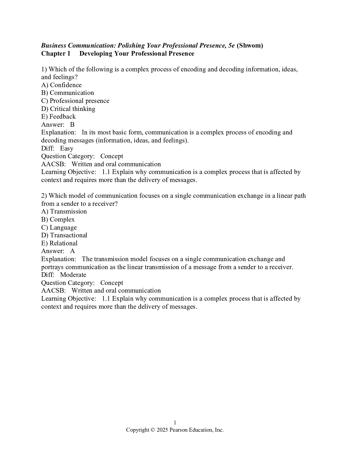 Business > TEST BANKS > Test Bank For Business Communication Polishing Your Professional Presence, 2025 5th Edition by Barbara Shwom Lisa Gueldenzoph Snyder | All Chapters 1-12