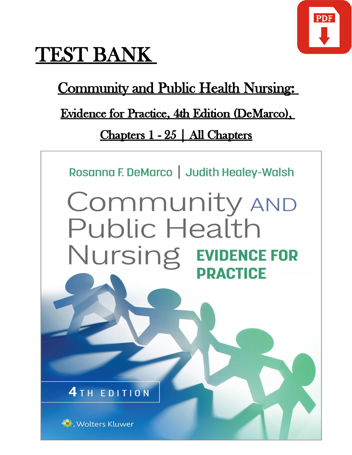 Public Health > TEST BANKS > Test Bank for Community and Public Health Nursing: Evidence for Practice, 4th Edition by Rosanna DeMarco & Judith Healey-Walsh | ISBN: 9781975118815 | Complete Verified Chapters 1-25 | Q&A with Rationales | Downloadable PDF