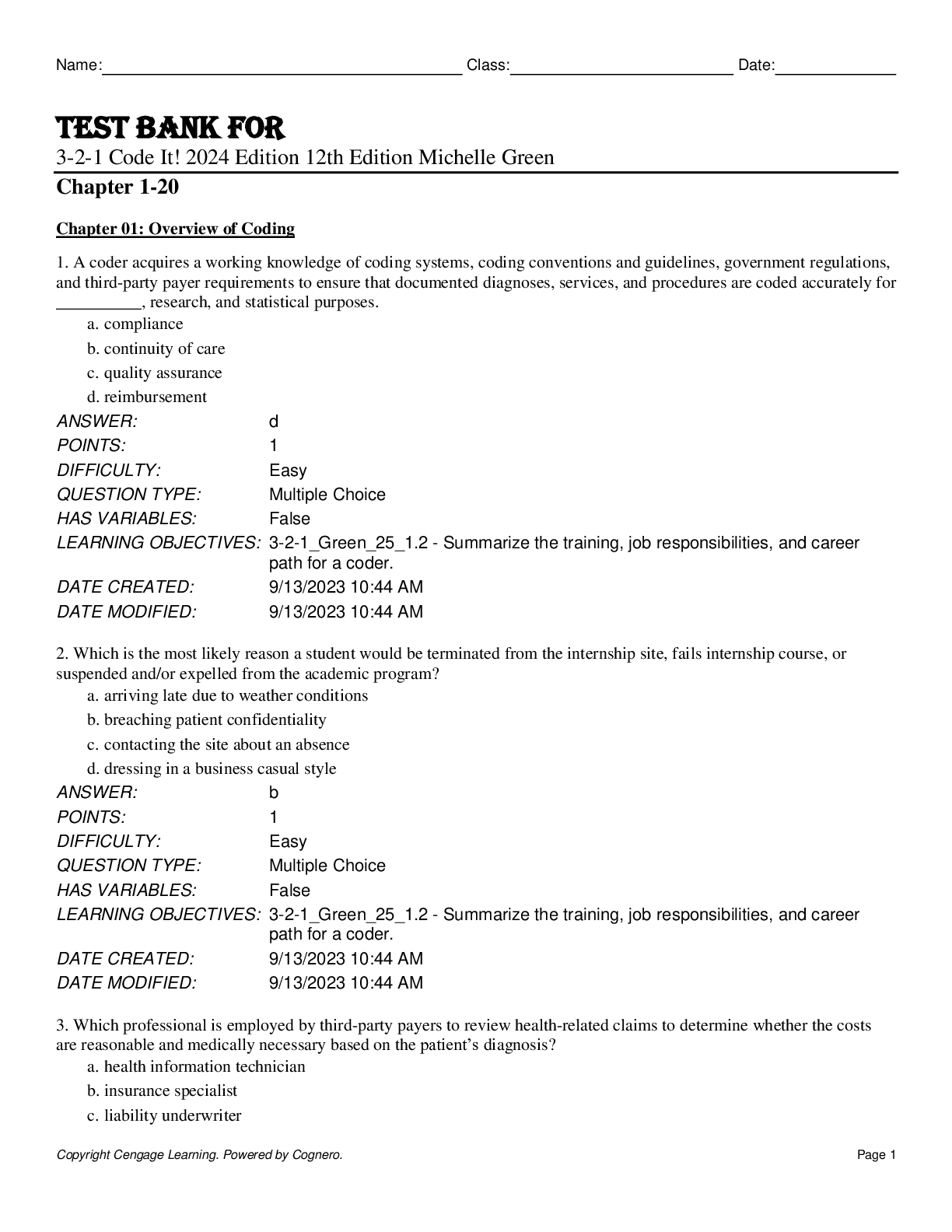 Business > TEST BANKS > Test Bank for 3-2-1 Code It! 2024 Edition 12th Edition by Michelle Green Chapter 1-20