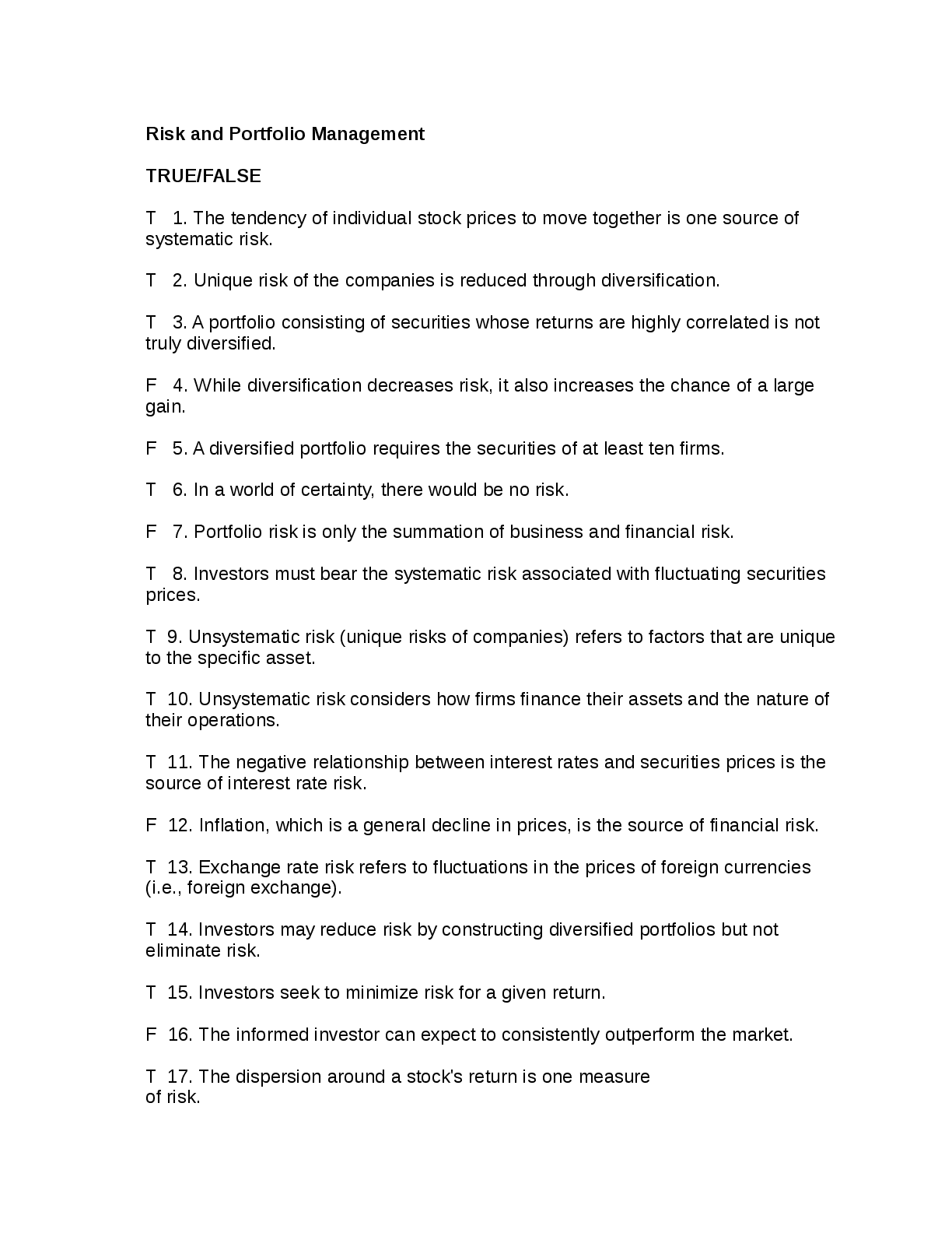 *NURSING > MEDICAL STUDY RESOURCES > Risk and Portfolio Management Exam
