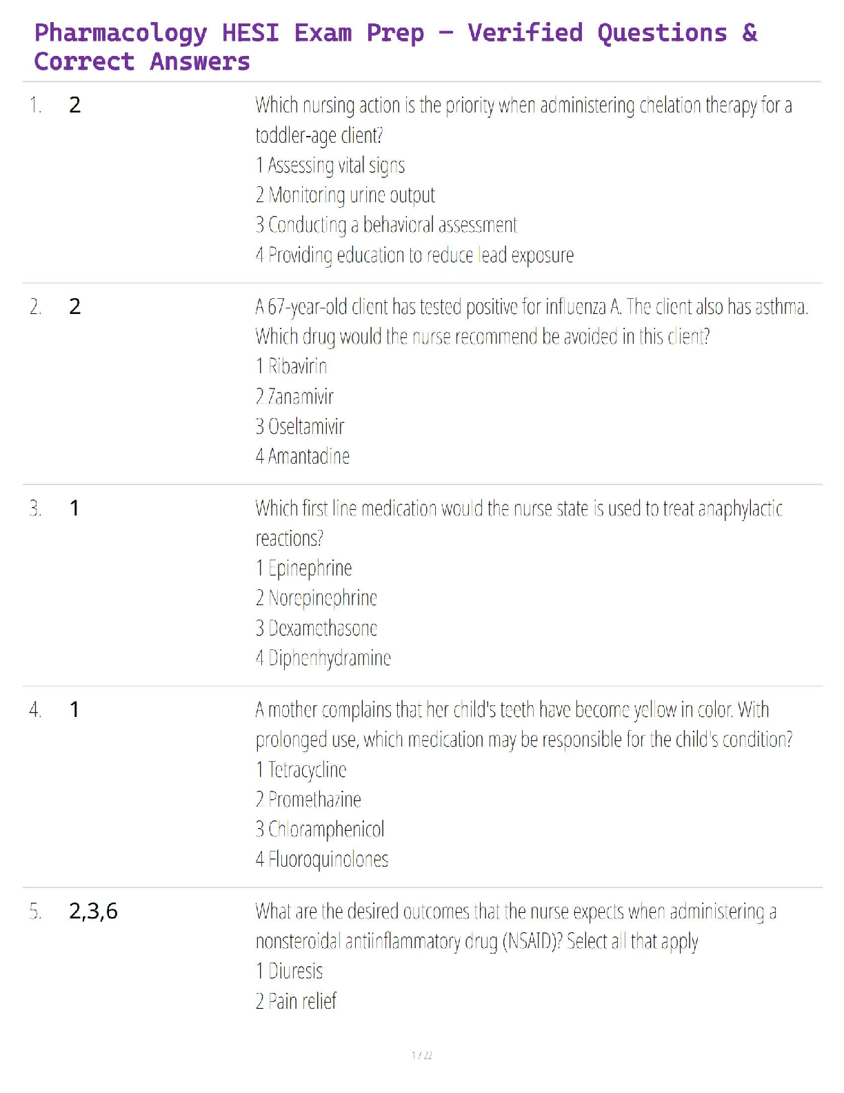 Pharmacology > QUESTIONS and ANSWERS > Pharmacology HESI Exam Prep – Verified Questions & Correct Answers