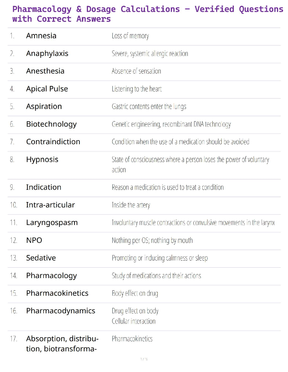 Pharmacology for Nursing Care > QUESTIONS and ANSWERS > Pharmacology & Dosage Calculations – Verified Questions with Correct Answers