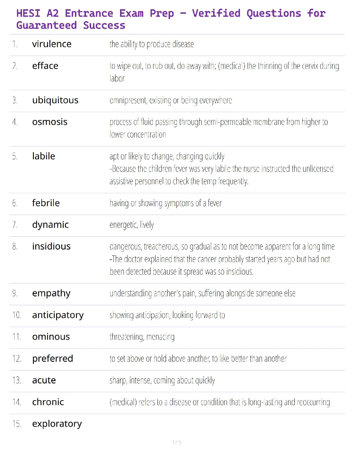 HESI > QUESTIONS and ANSWERS > HESI A2 Vocabulary Mastery – 250+ Practice Questions for Exam Success