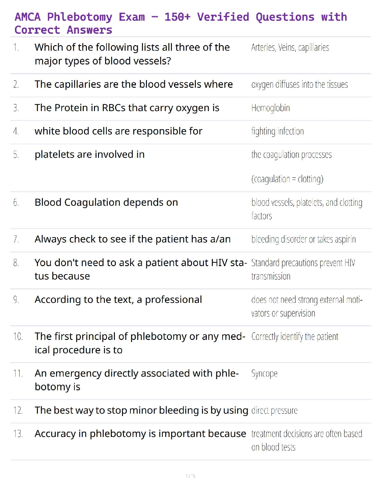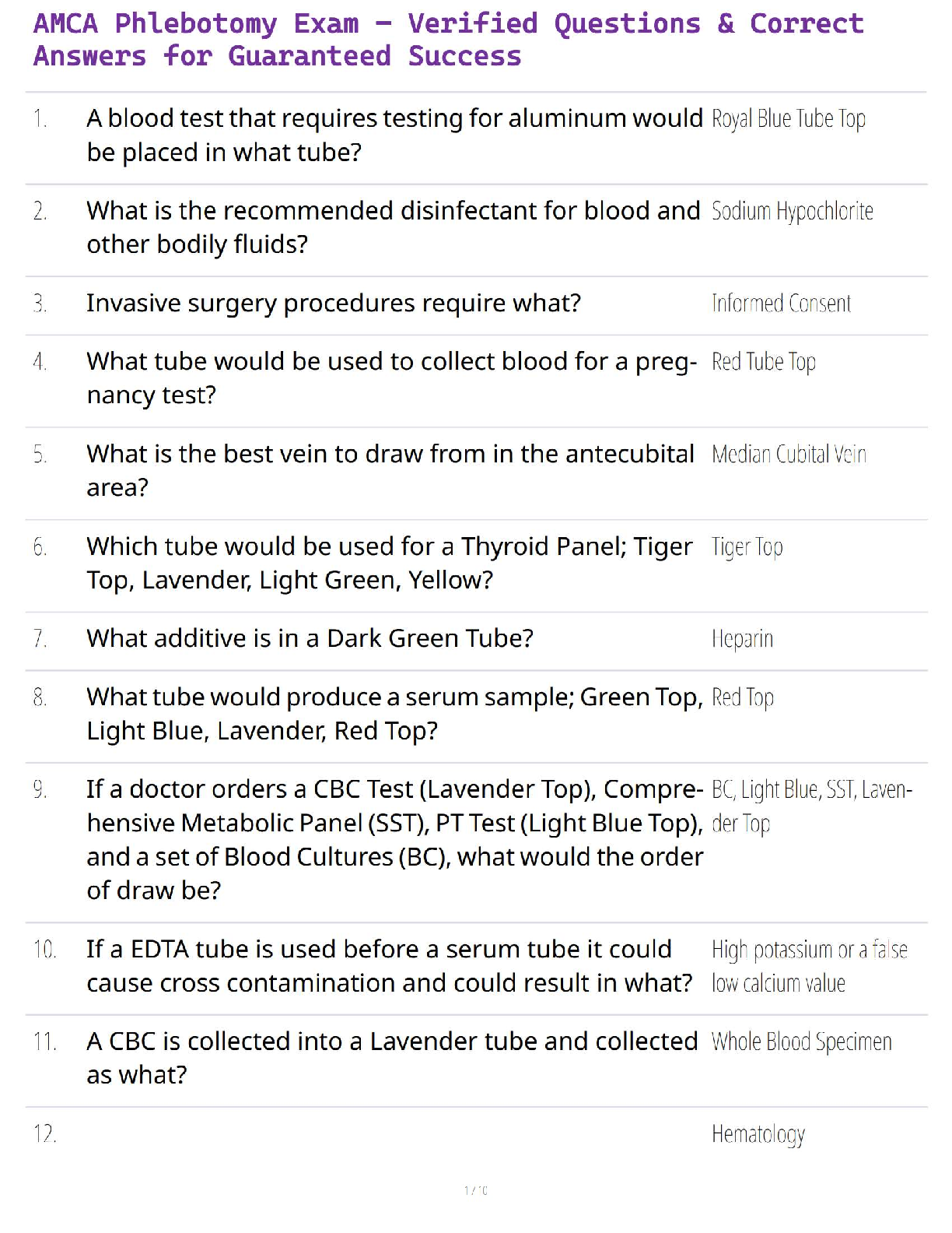 *NURSING > QUESTIONS and ANSWERS > AMCA Phlebotomy Exam – Verified Questions & Correct Answers for Guaranteed Success