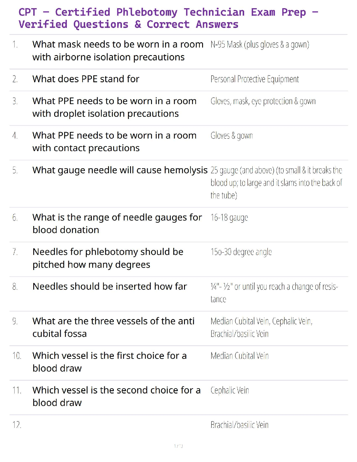 *NURSING > QUESTIONS and ANSWERS > CPT – Certified Phlebotomy Technician Exam Prep – Verified Questions & Correct Answers