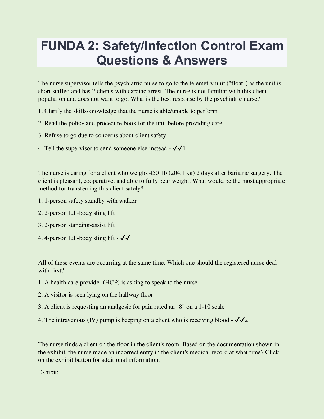 *NURSING > QUESTIONS & ANSWERS > FUNDA 2: Safety/Infection Control Exam Questions & Answers