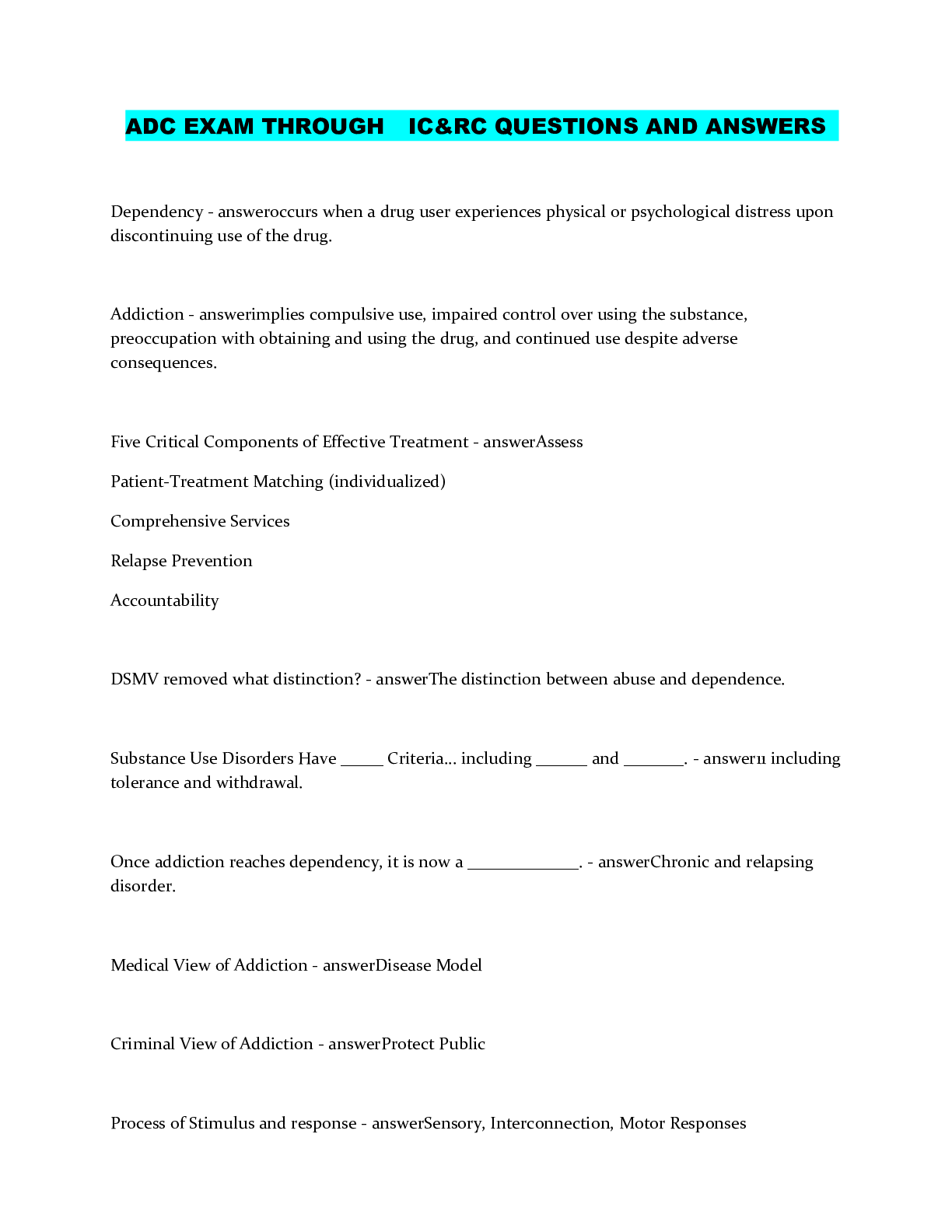 *NURSING > QUESTIONS & ANSWERS > ADC EXAM THROUGH IC&RC QUESTIONS AND ANSWERS