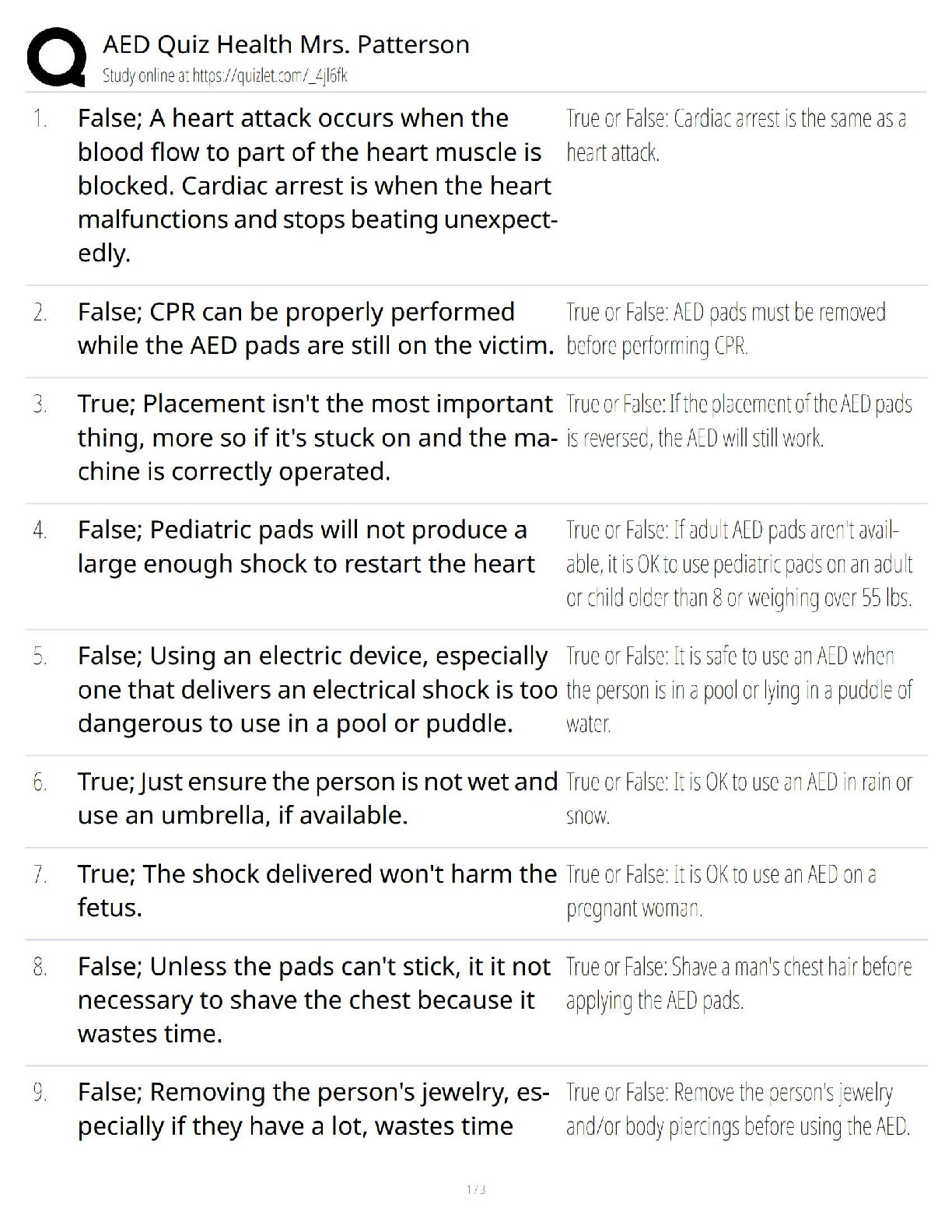 *NURSING > QUESTIONS & ANSWERS > AED Quiz Health / Mrs. Patterson / 2025 Update / Score 100% / New Version Study Guide