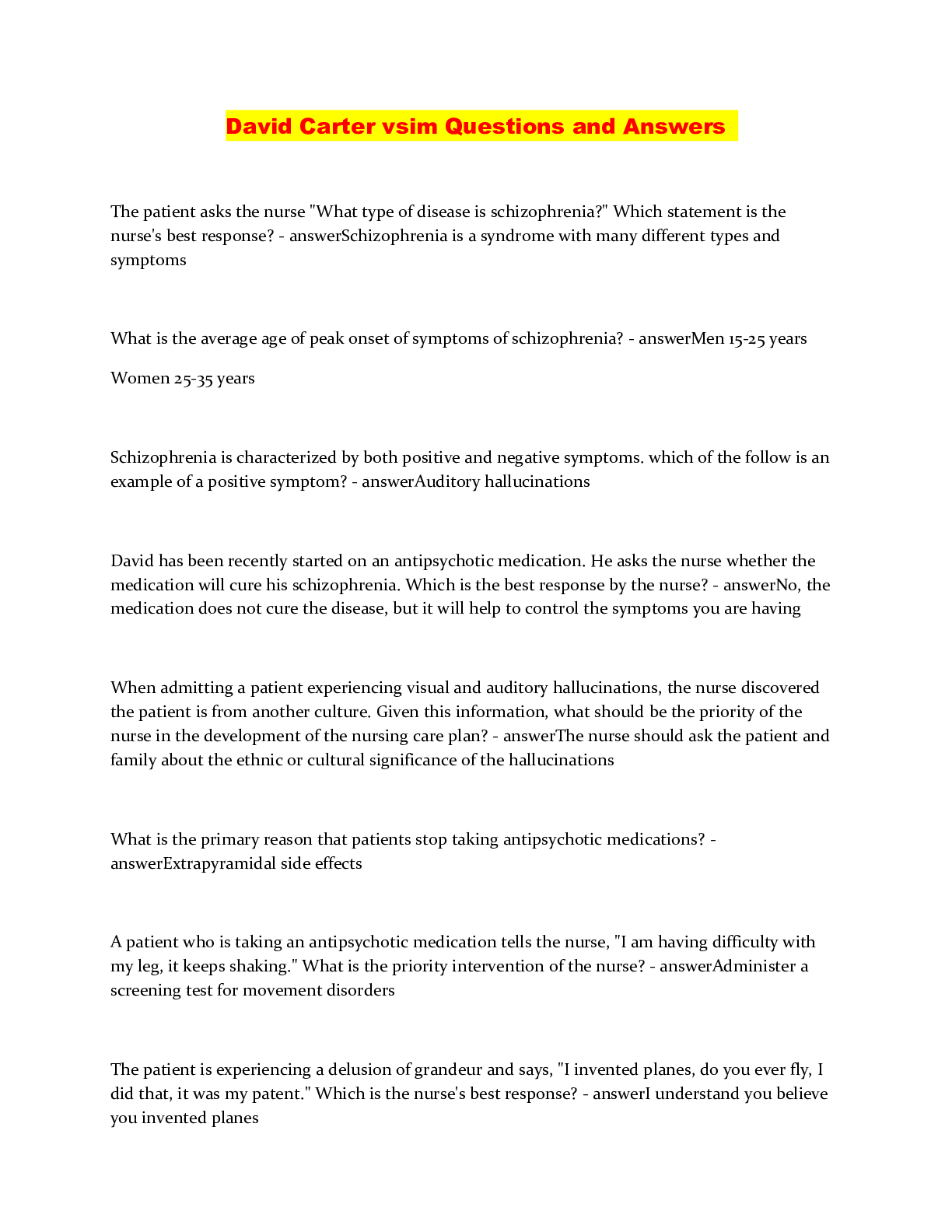 *NURSING > QUESTIONS & ANSWERS > David Carter vSim questions and answers 100% pass