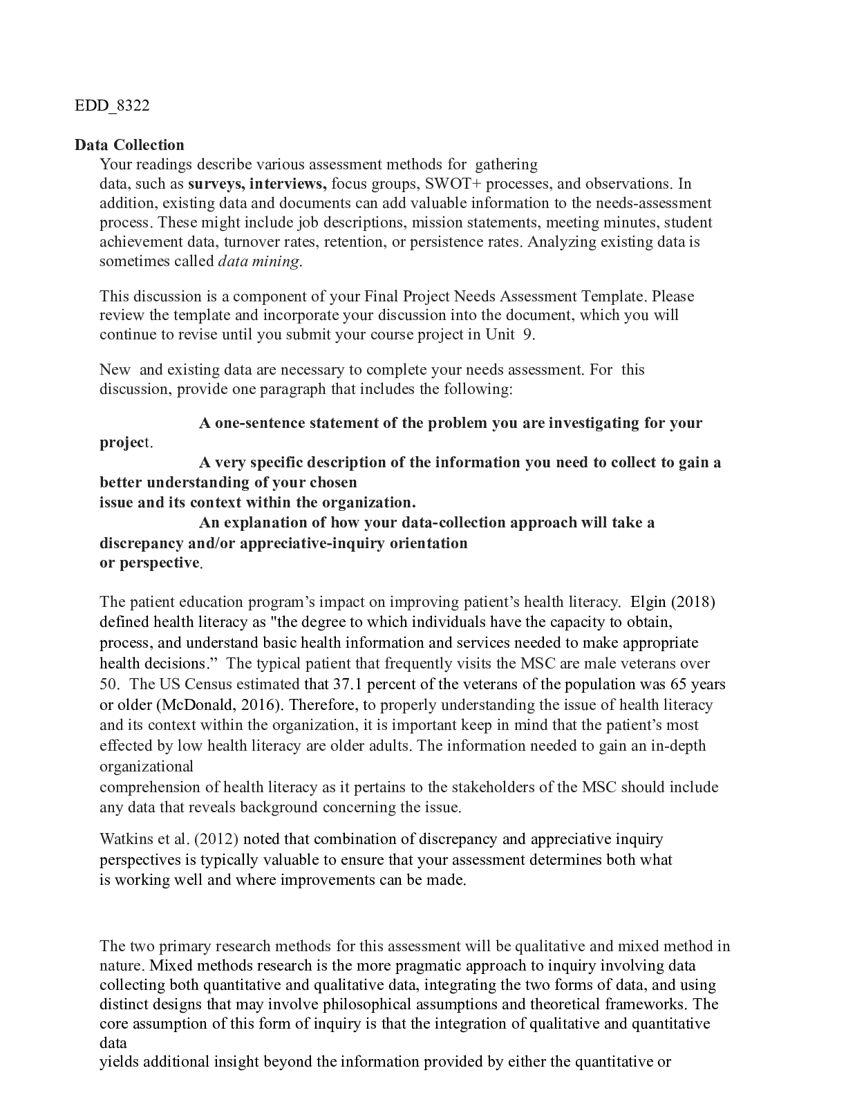 Business > CASE STUDY > EDD 8322 Unit 3 Discussion.docx EDD_8322 ï‚·Data Collection Your readings describe vari