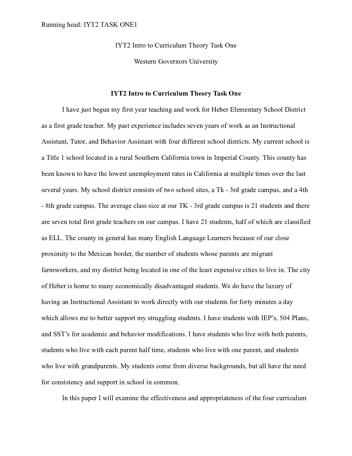 Business > CASE STUDY > Final_Intro_to_Curriculum_Theory_Task_1.docx IYT2 Intro to Curriculum Theory Task One We