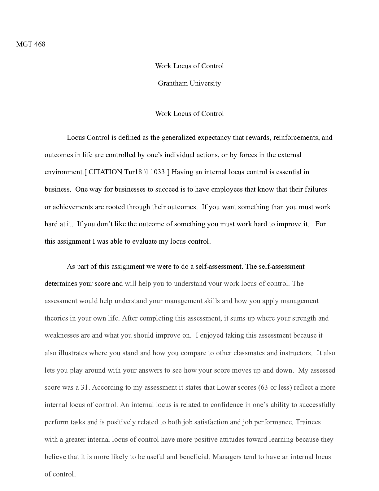 Business > CASE STUDY > MGT468 W2Assignment.docx MGT 468 Work Locus of Control Grantham University Work Locu