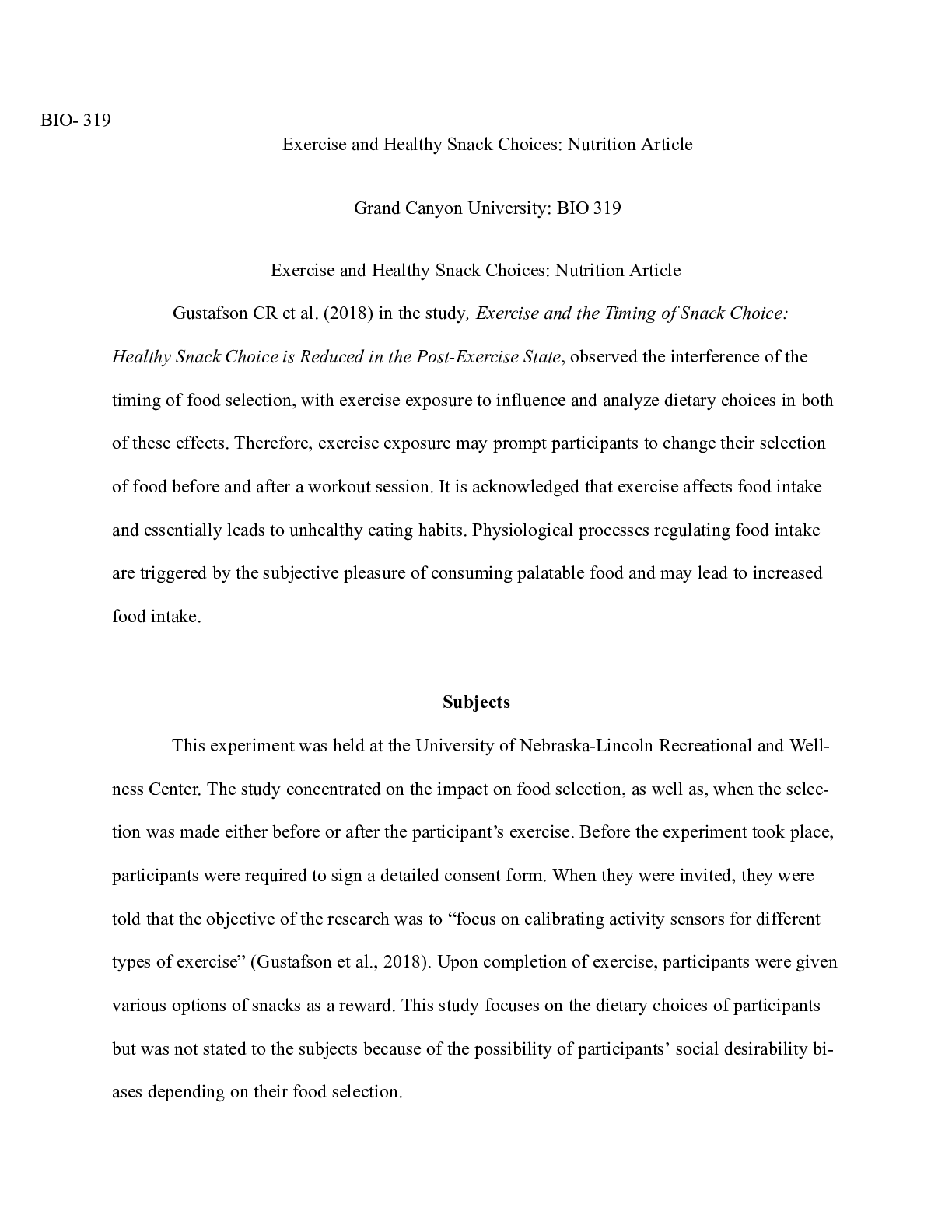 Business > CASE STUDY > BIO319_Nutritional_Article.docx(1) BIO- 319 Exercise and Healthy Snack Choices: Nutrit