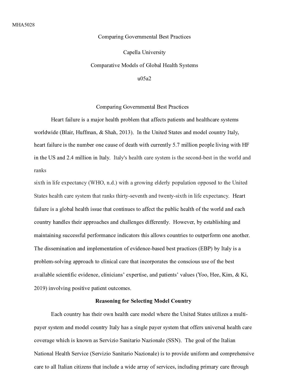 Business > CASE STUDY > MHA 5028 Assignment 2 week 5.docx MHA5028 Comparing Governmental Best Practices Capella
