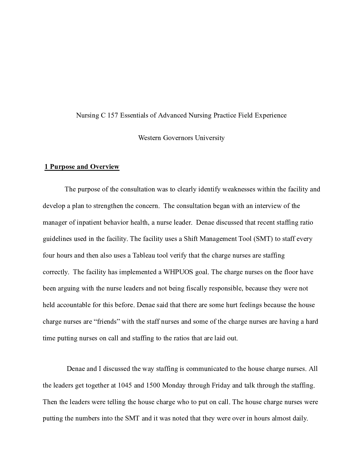 Business > CASE STUDY > Nursing C 157 Essentials of Advanced Nursing Practice Field Experience    Â