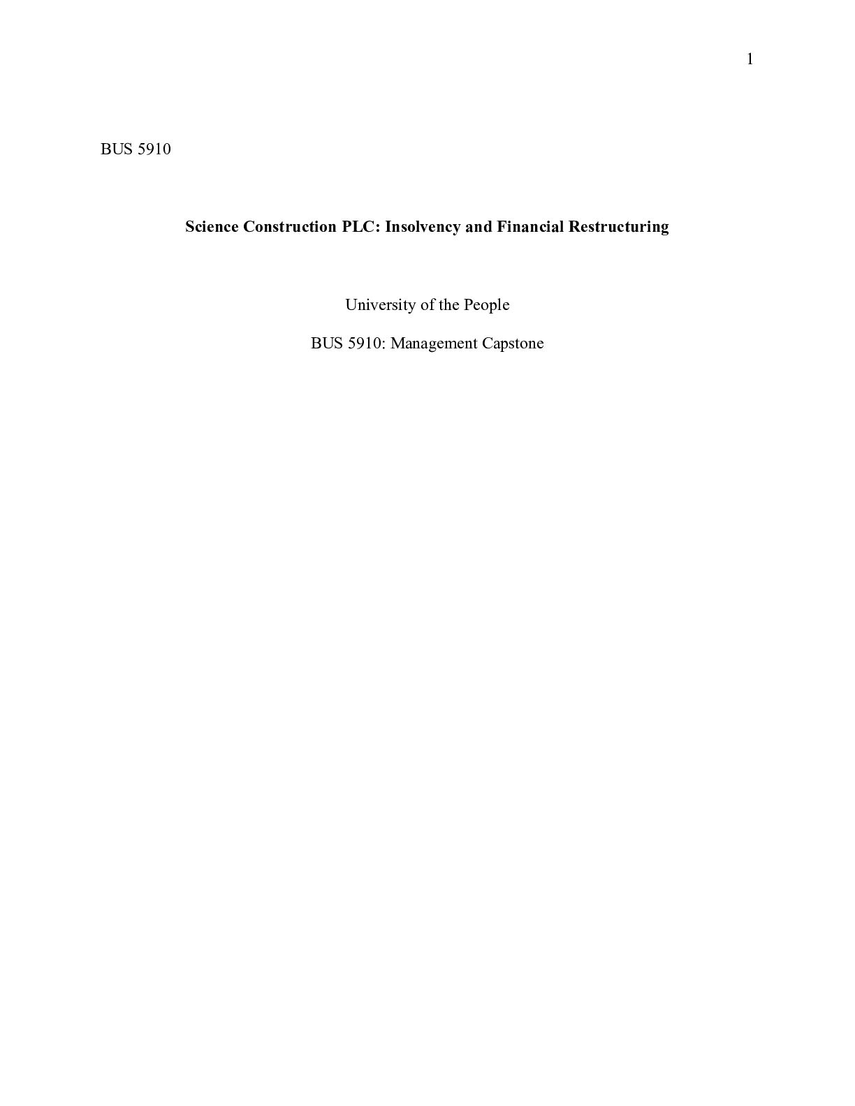 Business > CASE STUDY > Written Assignment Unit 5.docx BUS 5910 Science Construction PLC: Insolvency and Finan
