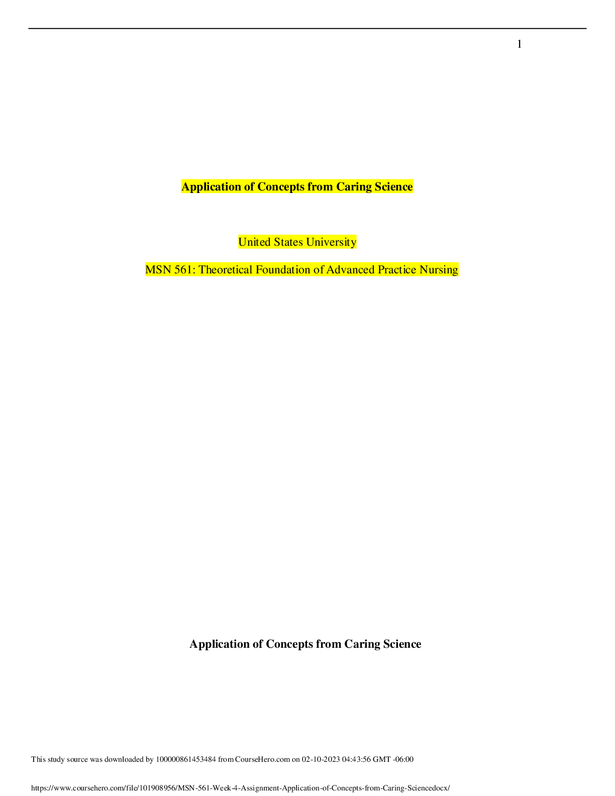 *NURSING > CASE STUDY > MSN 561 - Week 4 Assignment. Application of Concepts from Caring Science /100% Verified /2022/2023