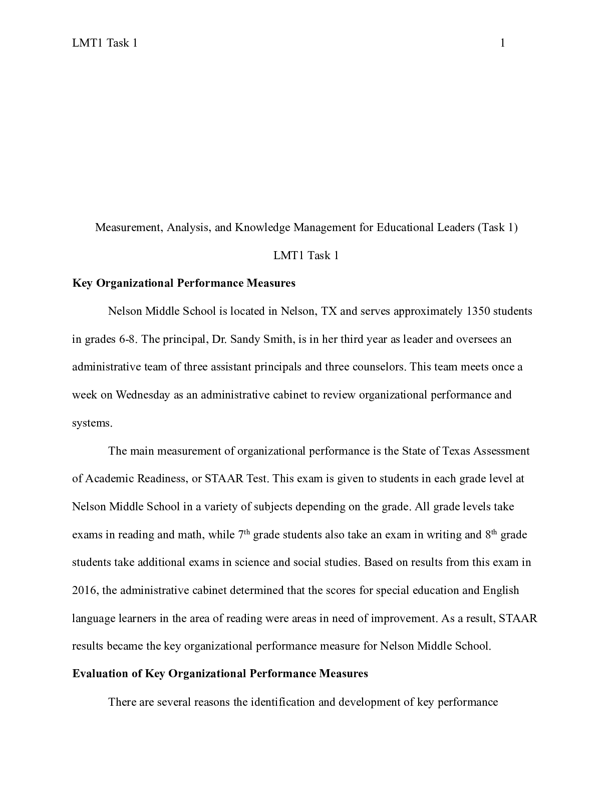 Business > CASE STUDY > Measurement, Analysis, and Knowledge Management for Educational Leaders – LMT1 Review o