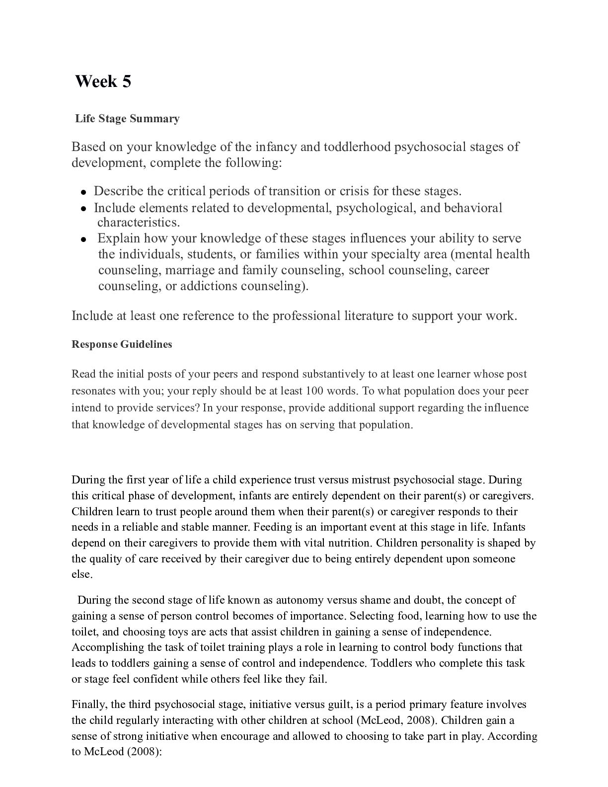 Business > CASE STUDY > week5dis1Life Stage Summary.docx Week 5 Life Stage Summary Based on your knowledge of t