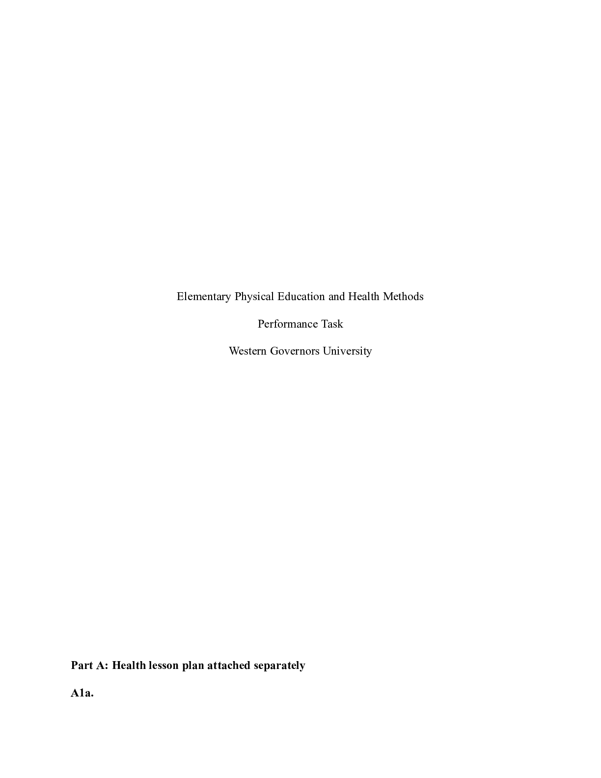 Business > CASE STUDY > Performance Task C367.docx Elementary Physical Education and Health Methods Performanc