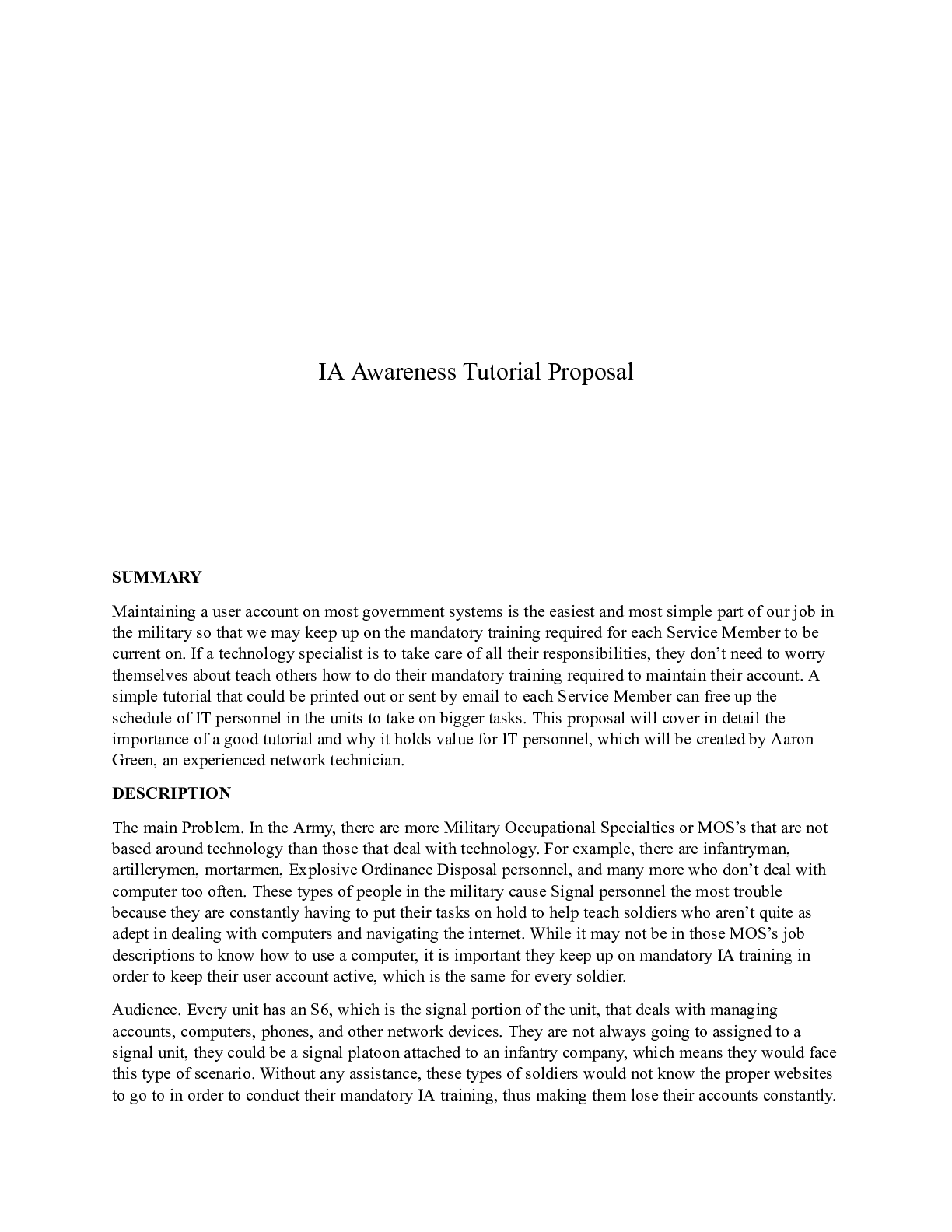 Business > CASE STUDY > CM241 Unit5 Green.docx IA Awareness Tutorial Proposal SUMMARY Maintaining a user acco