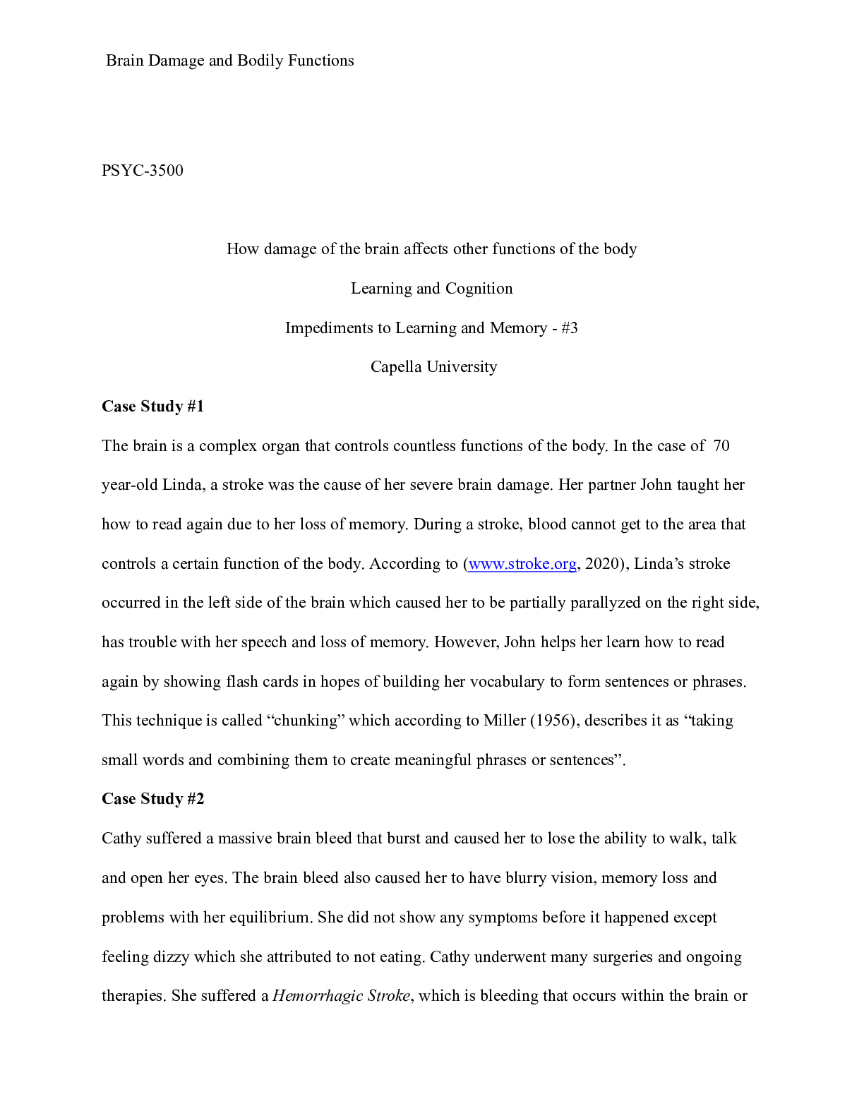 Business > CASE STUDY > PSYC_3500__Assessment3_1.docx PSYC-3500 How damage of the brain affects other function