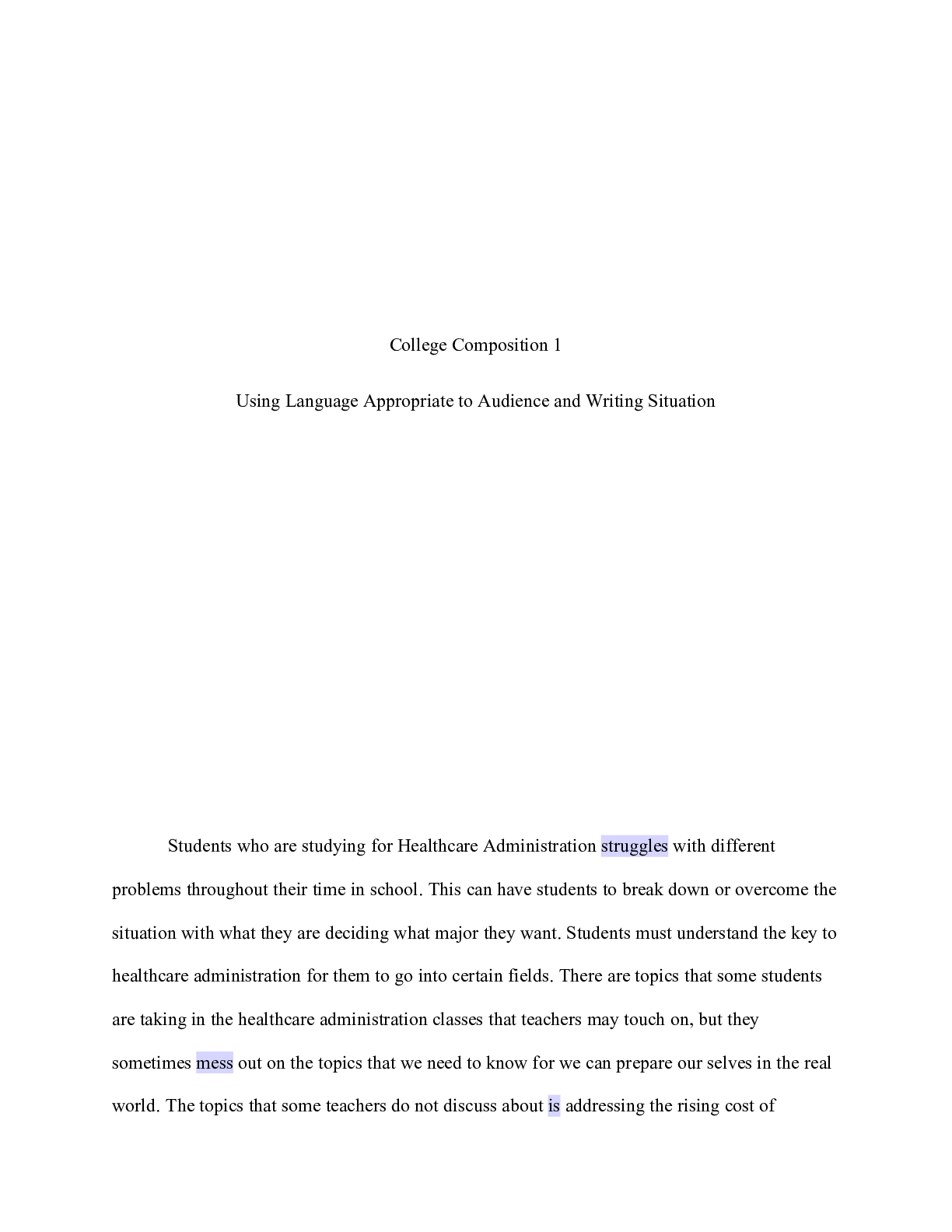 Business > CASE STUDY > CM107M2 04 Usingta.docx College Composition 1 Using Language Appropriate to Audience a