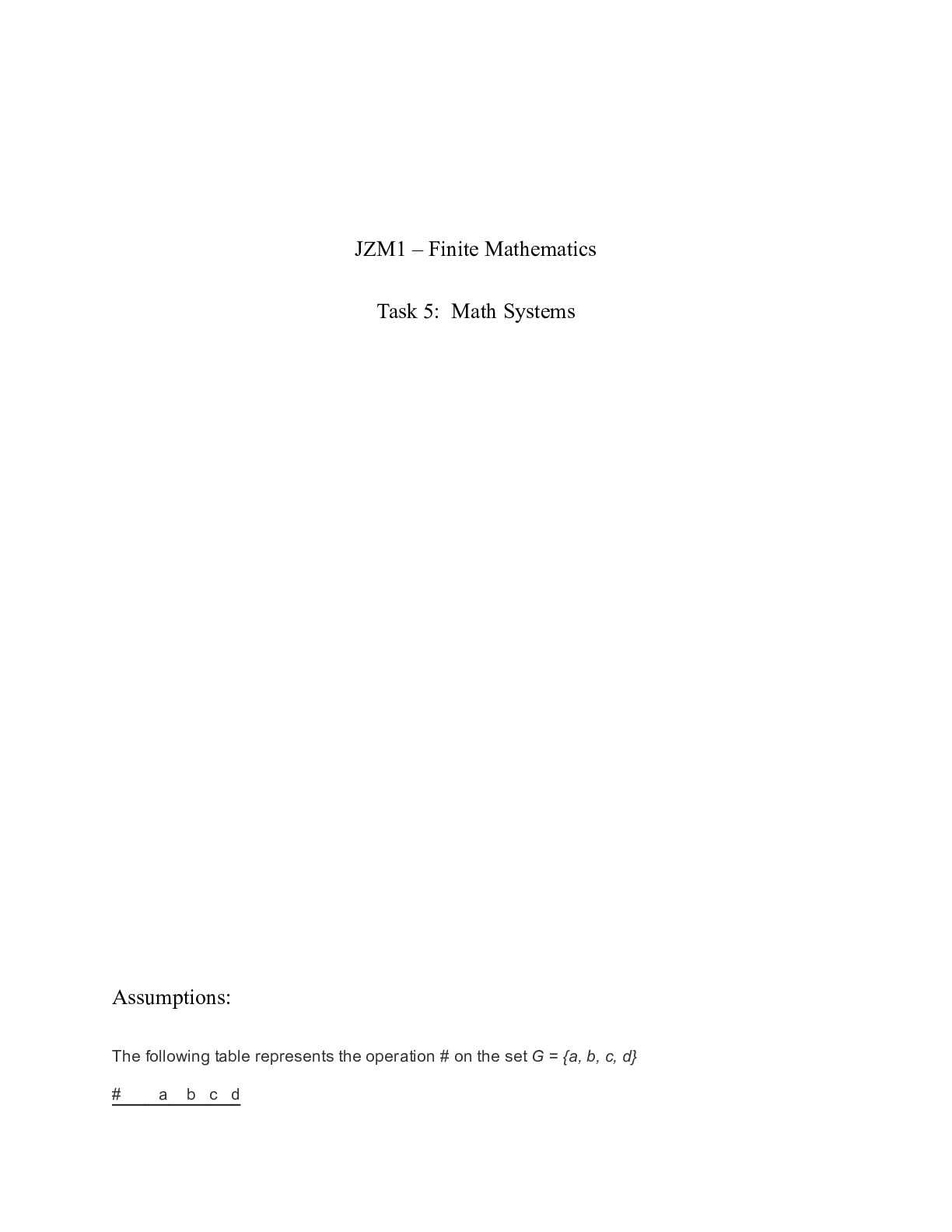 Business > CASE STUDY > Finite Mathematics JZM1 task 5.docx JZM1 – Finite Mathematics Task 5: Math Systems
