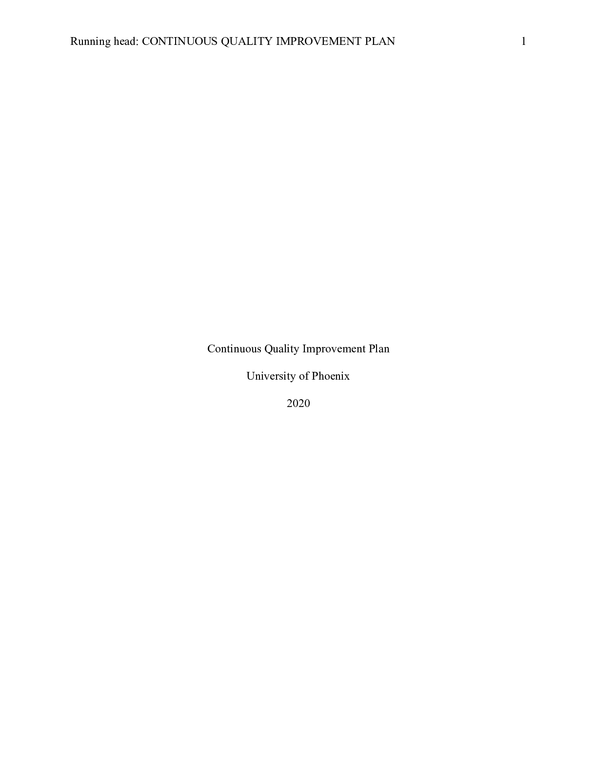 Business > CASE STUDY > CHContinuous_Quality_Improvement_Plan.docx Continuous Quality Improvement Plan Your Na
