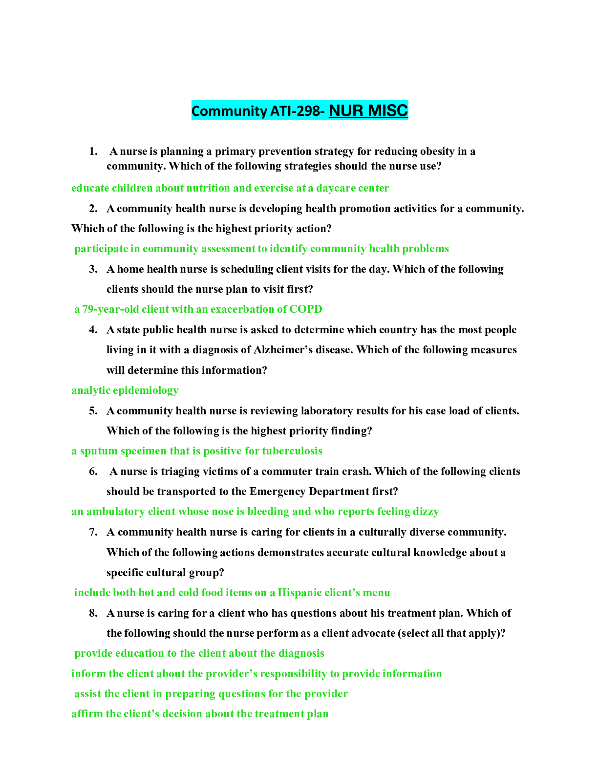 *NURSING > Other Study Resources. > Community ATI-298- NUR MISC.pdf