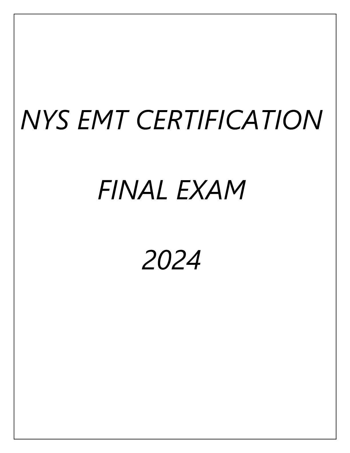 *NURSING > ESSAY > NYS EMT CERTIFICATION FINAL EXAM 2024
