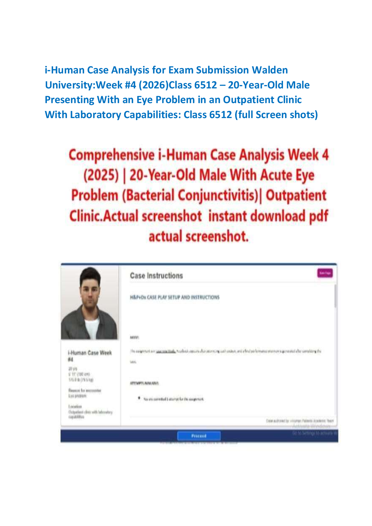 *NURSING > CASE STUDY > i-Human Case Analysis for Exam Submission Walden University:Week #4 (2026)Class 6512 – 20-Year-Old Male Presenting With an Eye Problem in an Outpatient Clinic With Laboratory Capabilities: Class 6512 (full Screen shots)