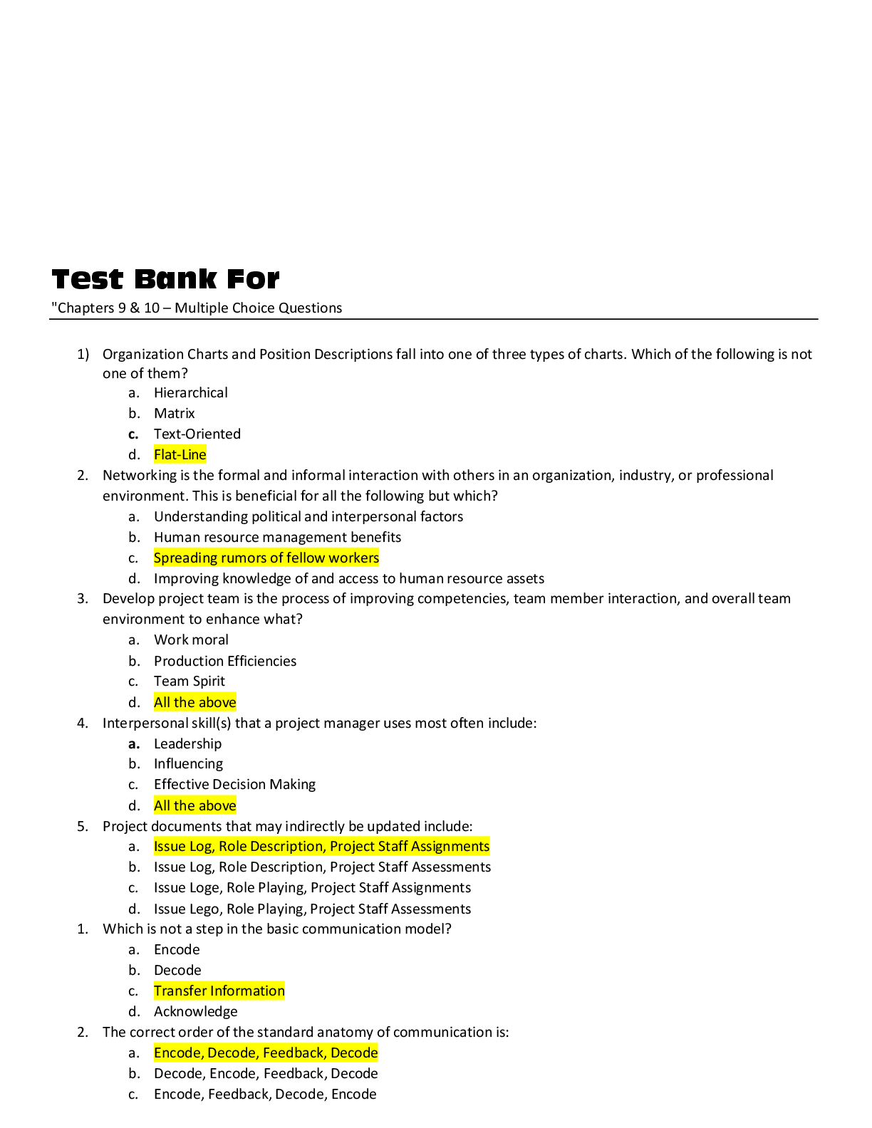 Business > TEST BANKS > Chapters 9 & 10 Multiple Choice Questions (Test Bank)
