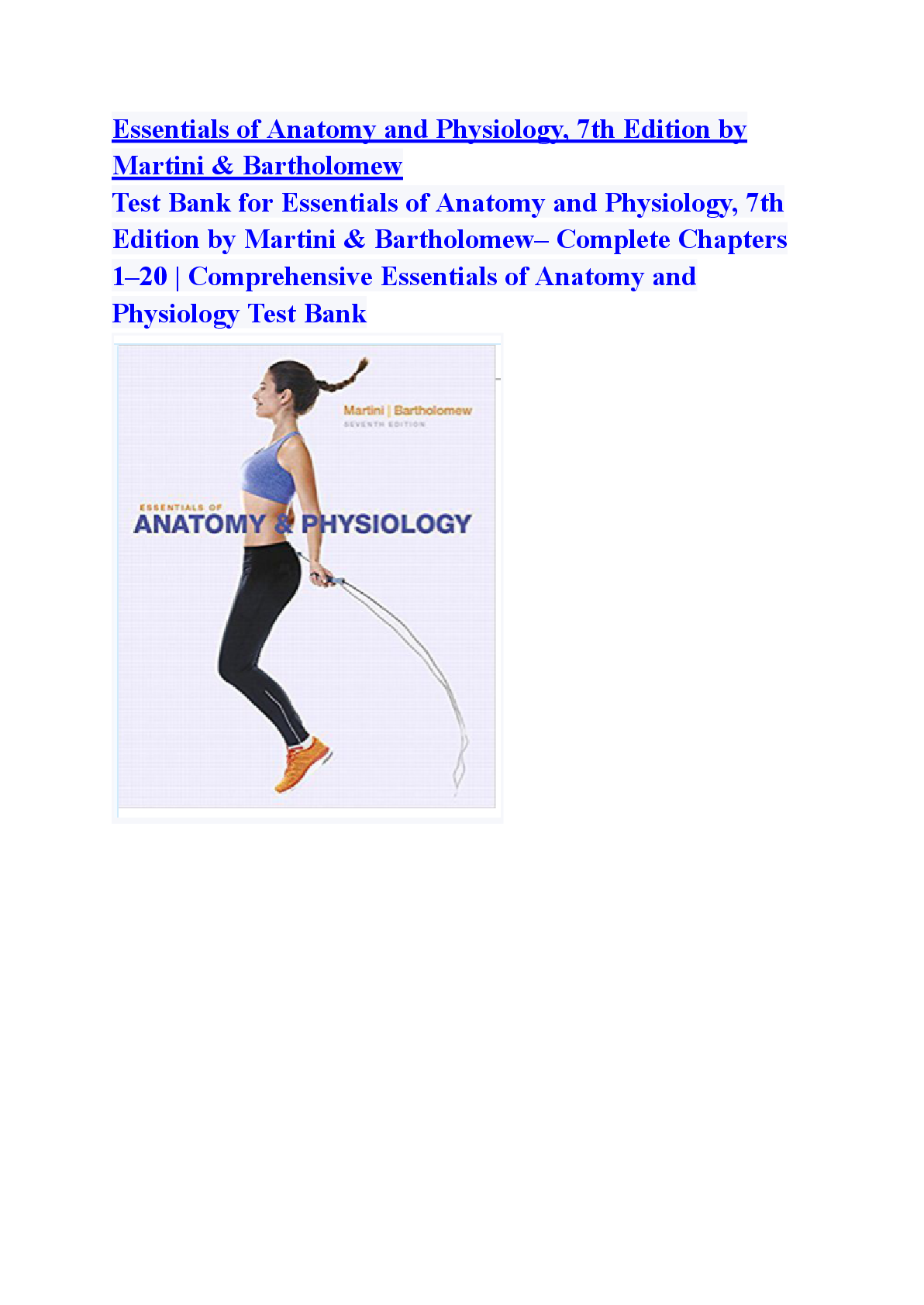 Human Anatomy and Physiology > TEST BANKS > Test Bank For Essentials of Anatomy and Physiology, 7th Edition by Martini & Bartholomew All Chapters 1- 20 A+