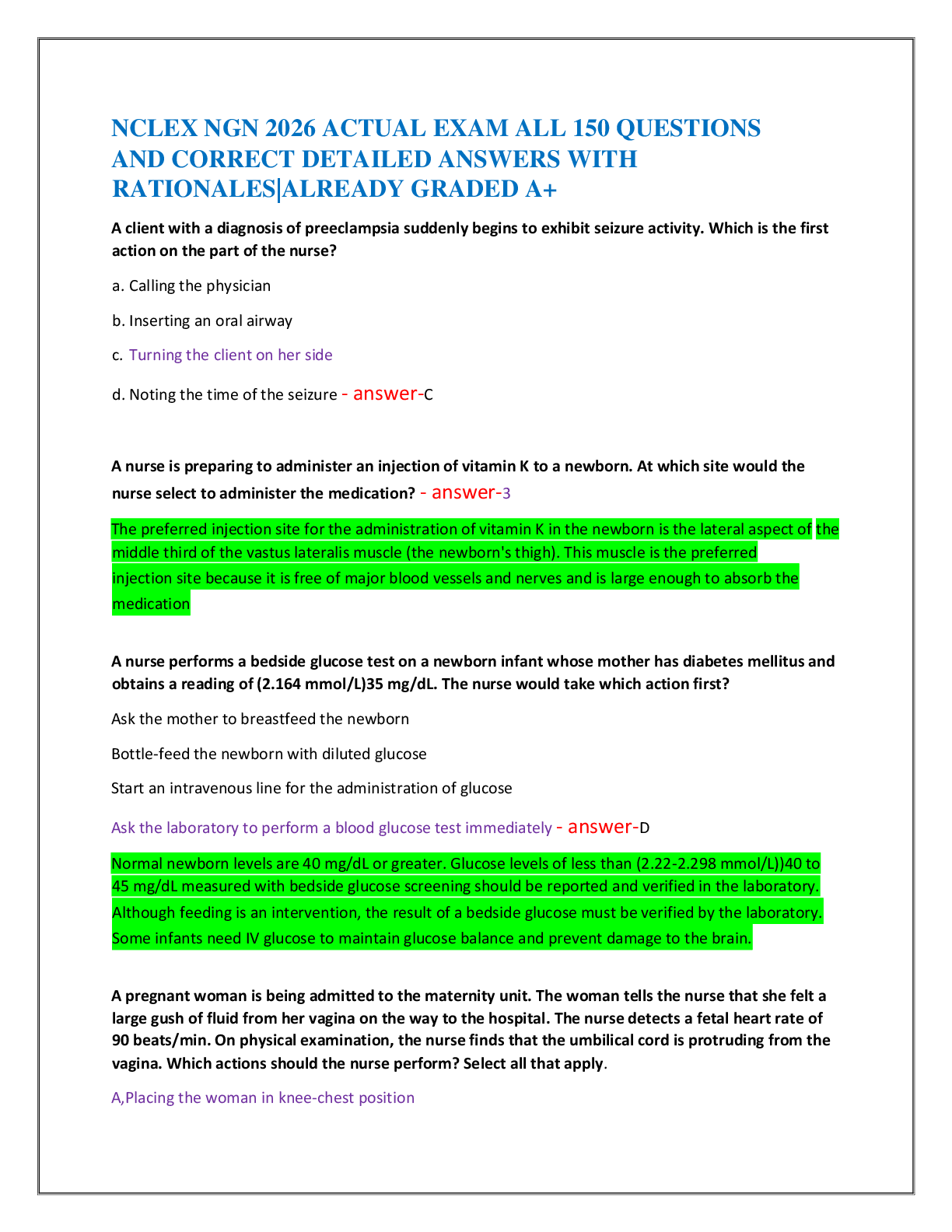 NCLEX RN > EXAM > NCLEX RN NEWEST 2026,TEST BANK ACTUAL EXAM 200 QUESTIONS AND CORRECT DETAILED VERIFIED ANSWERS)/ RN NCLEX TEST BANK|ALREADY GRADED A+|BRAN NEW!!2026