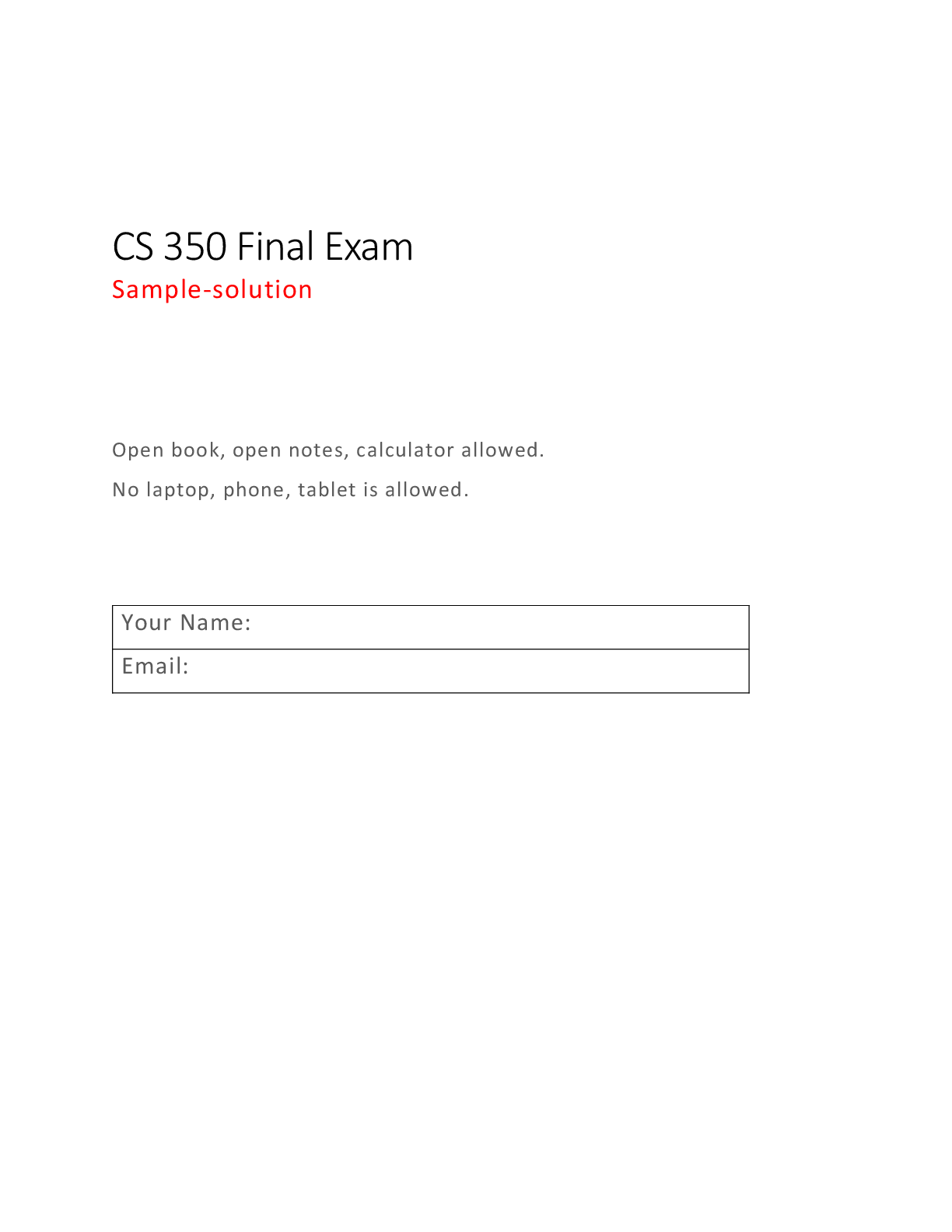 Programming > FINAL EXAM > CS 350 Final Exam Sample solutions | CS 350 - Computer Organization and Assembly Language Programming Illinois Institute of Technology (IIT)