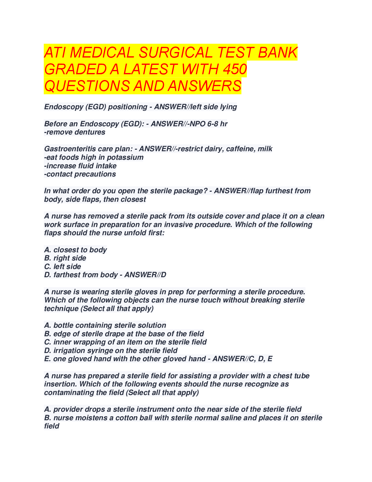 ATI MED SURGE > A-Level Question Paper > ATI Medical Surgical Test Bank 2025: 450 Graded A Questions & Answers | NCLEX Study Guide