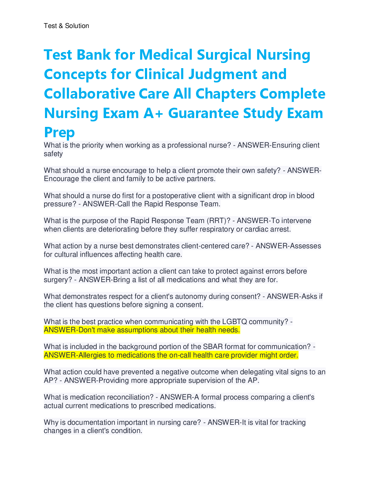 Medical Surgical Nursing > TEST BANKS > Test Bank for Medical Surgical Nursing Concepts for Clinical Judgment and Collaborative Care All Chapters Complete Nursing Exam A+ Guarantee Study Exam Prep