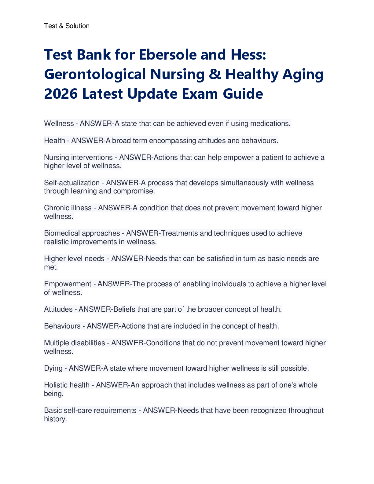 *NURSING > TEST BANKS > Test Bank for Ebersole and Hess: Gerontological Nursing & Healthy Aging 2026 Latest Update Exam Guide