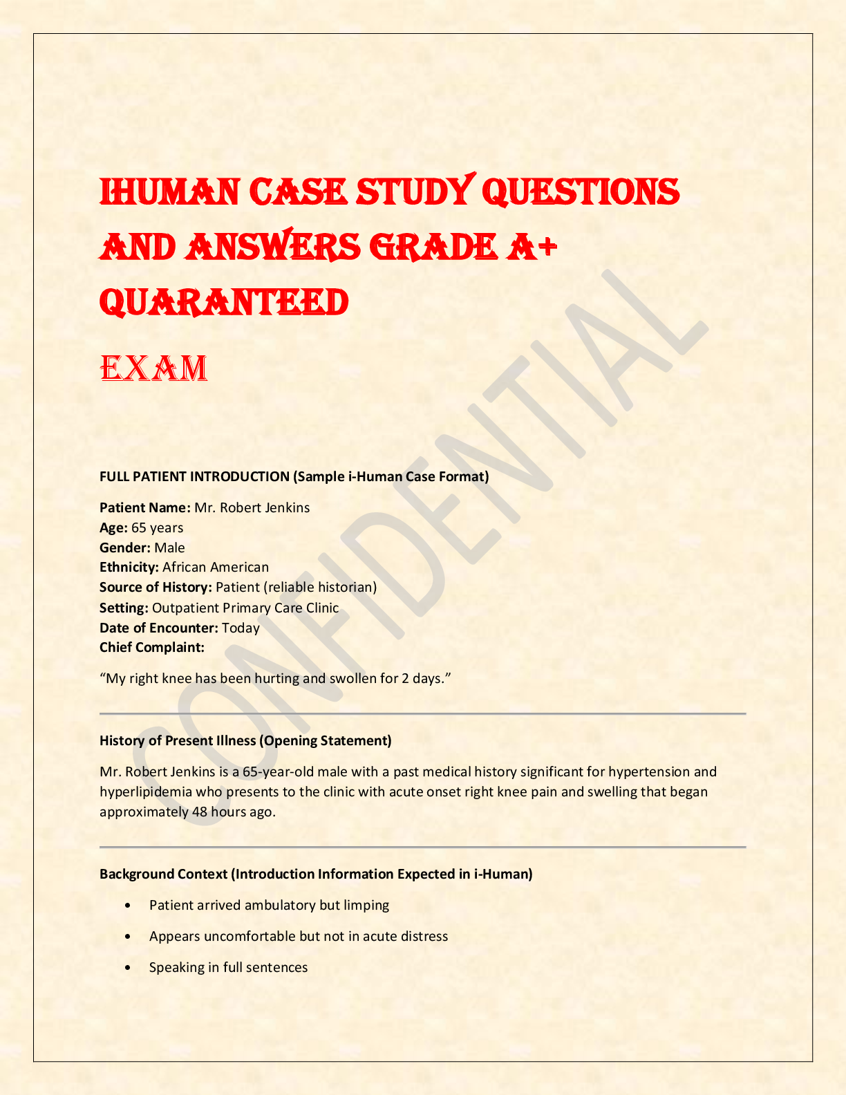 *NURSING > EXAM > IHUMAN CASE STUDY QUESTIONS AND ANSWERS GRADE A+ QUARANTEED Exam