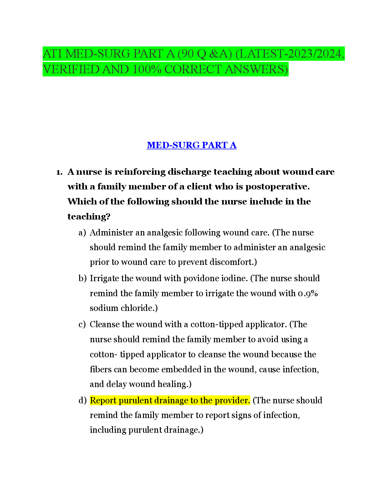 ATI Med Surg > QUESTIONS and ANSWERS > ATI MED-SURG PART A (90 Q &A) (LATEST-2023/2024, VERIFIED AND 100% CORRECT ANSWERS)