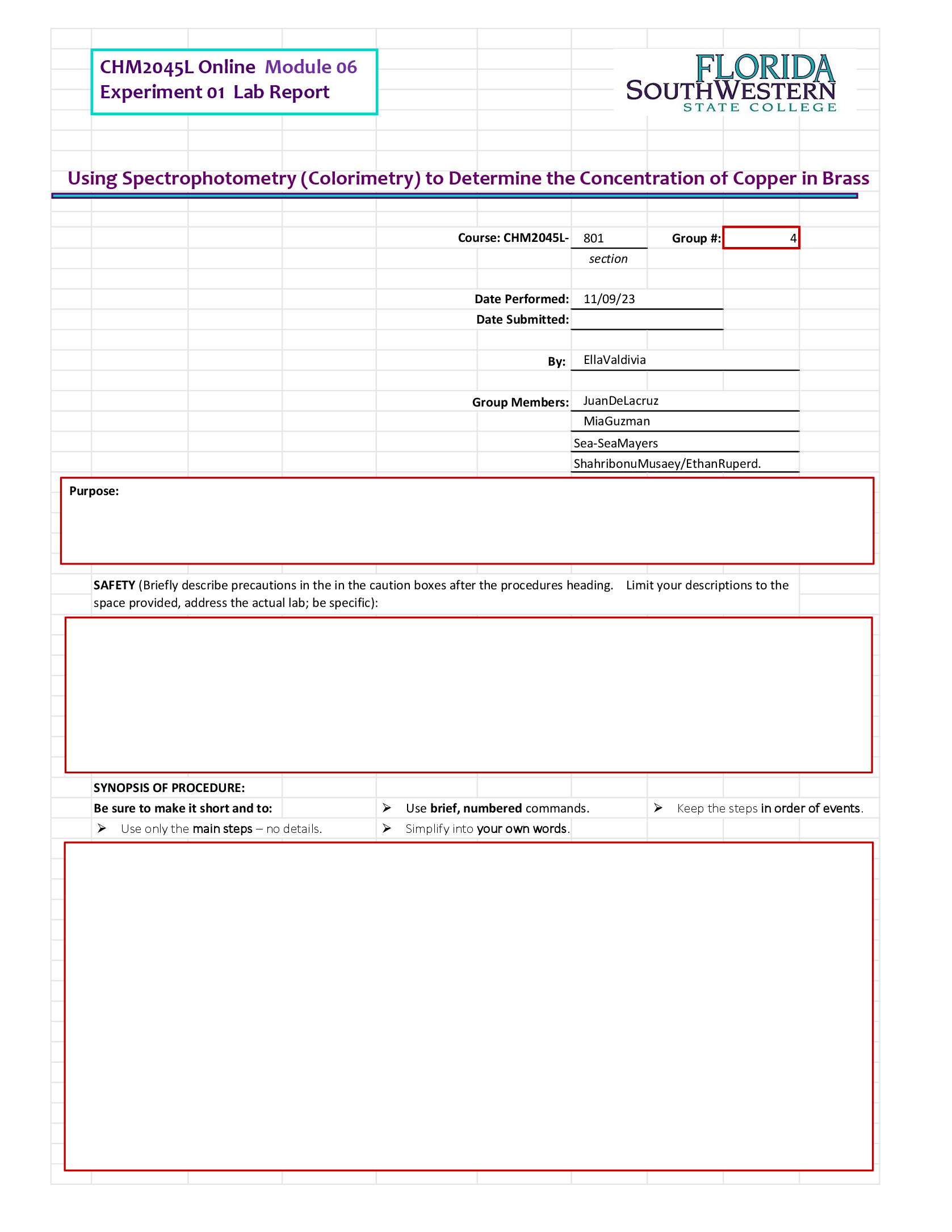ChemistryLab Experiment  > CHM 2045L Online Module 06 Experiment 01 Lab Report
