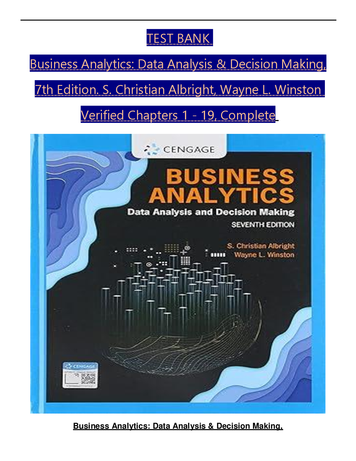 Business Analytics > TEST BANKS > Test Bank for Business Analytics: Data Analysis & Decision Making, 7th Edition by S. Christian Albright & Wayne L. Winston | ISBN: 9780357109953 | Complete Chapters 1-19 | Questions & Answers | Downloadable PDF