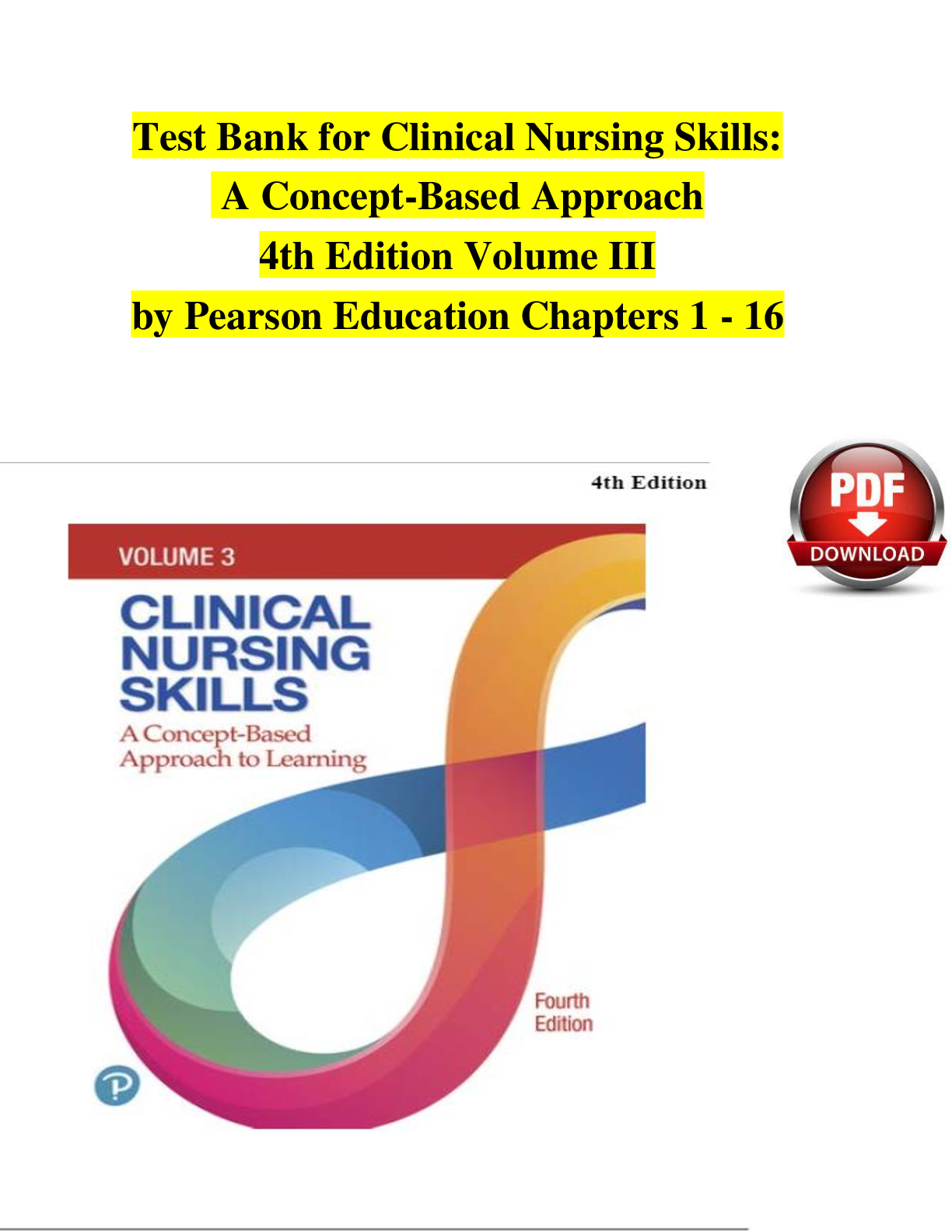 Clinical Medicine > TEST BANKS > Test Bank for Clinical Nursing Skills: A Concept-Based Approach, 4th Edition Volume III by Pearson Education | ISBN: 9780136909491 | Complete Chapters 1-16 | Q&A with Rationales | Downloadable PDF